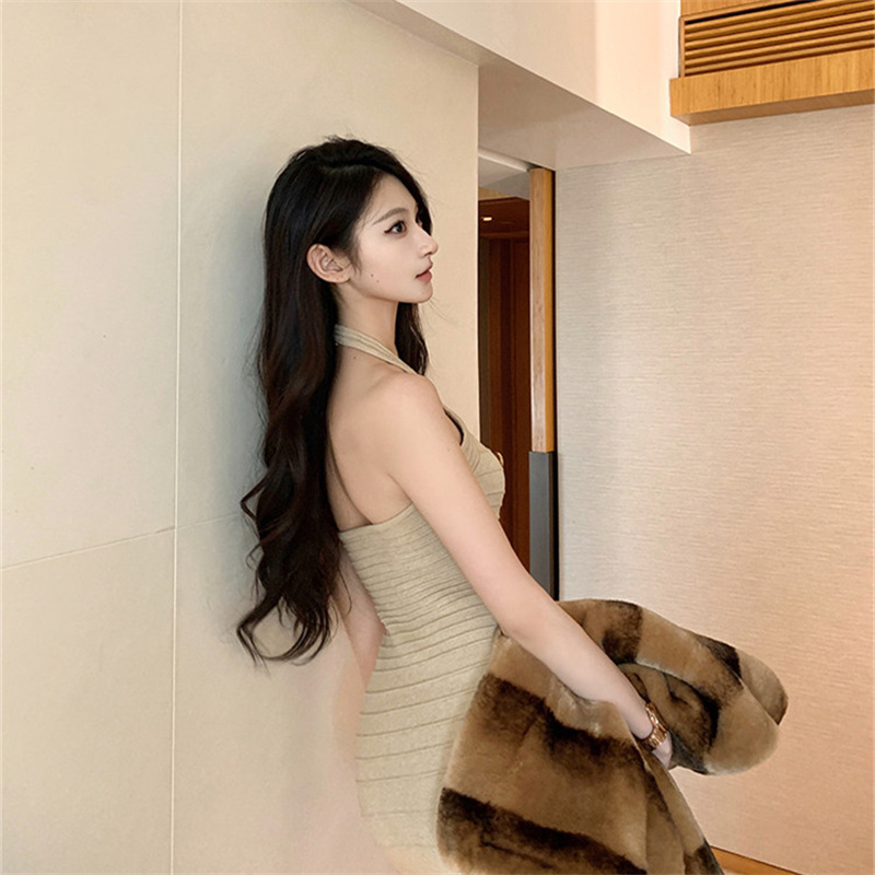 FA52886# OKMASHOP小香风针织连衣裙女冬内搭打底裙子高级感气质挂脖短裙 服裝批發女裝批發服飾貨源