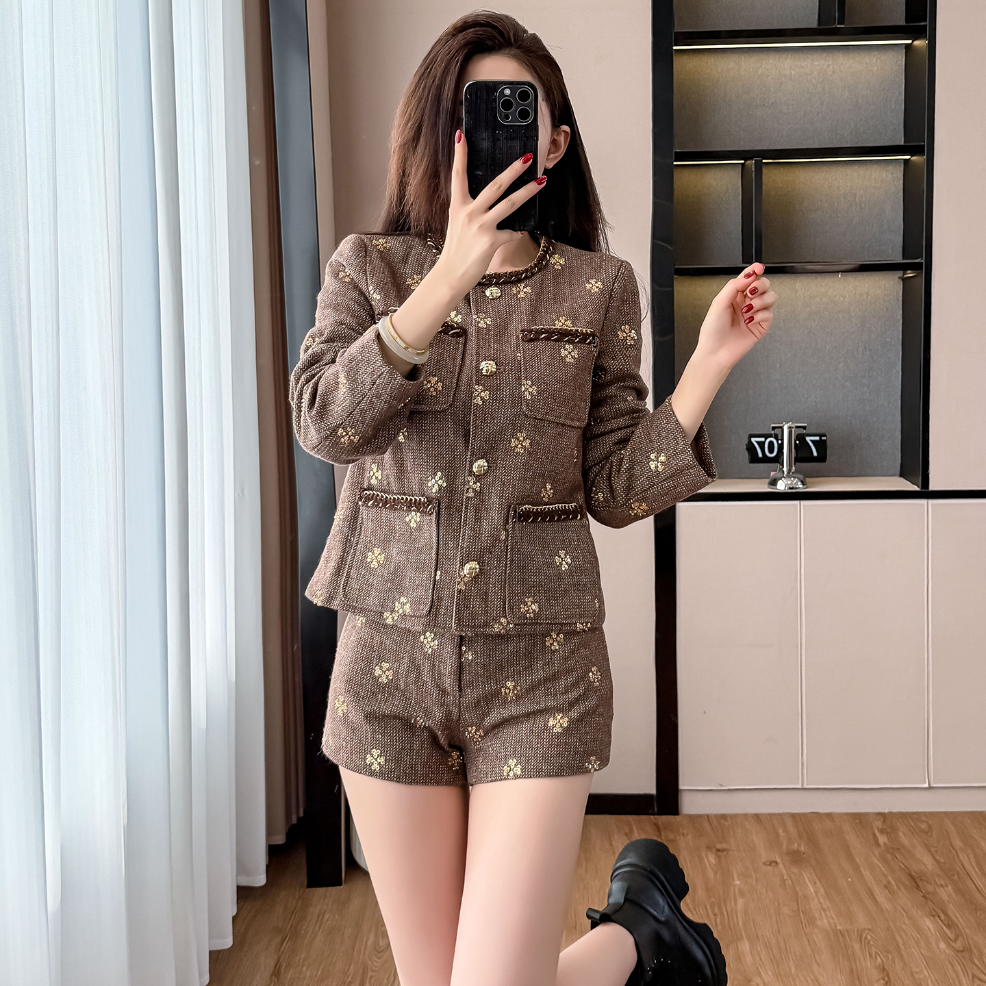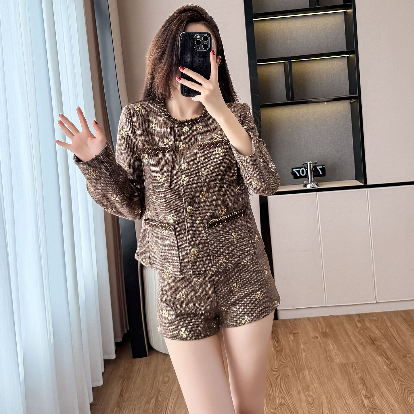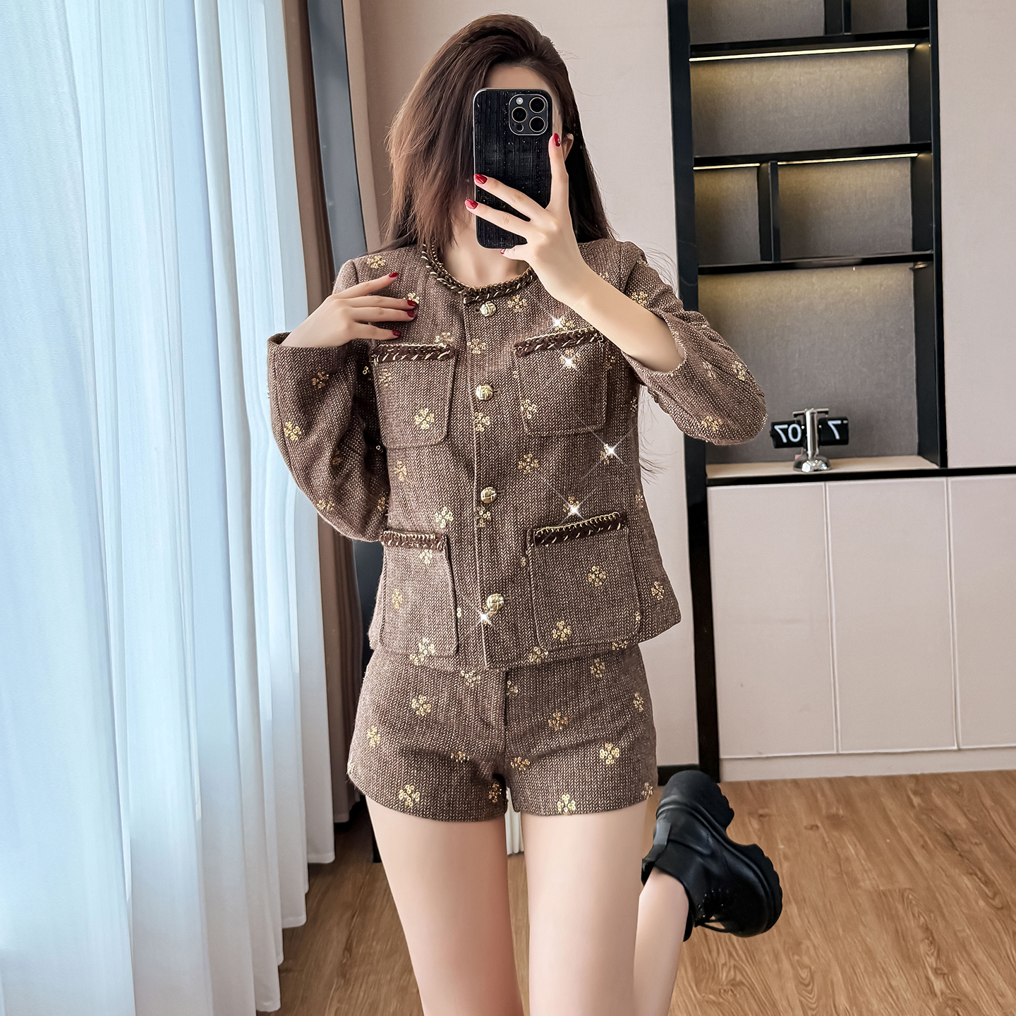 FA52895# 亮片小香风外套女秋季新款高级感复古小个子正肩短款上衣短裤 服裝批發女裝批發服飾貨源