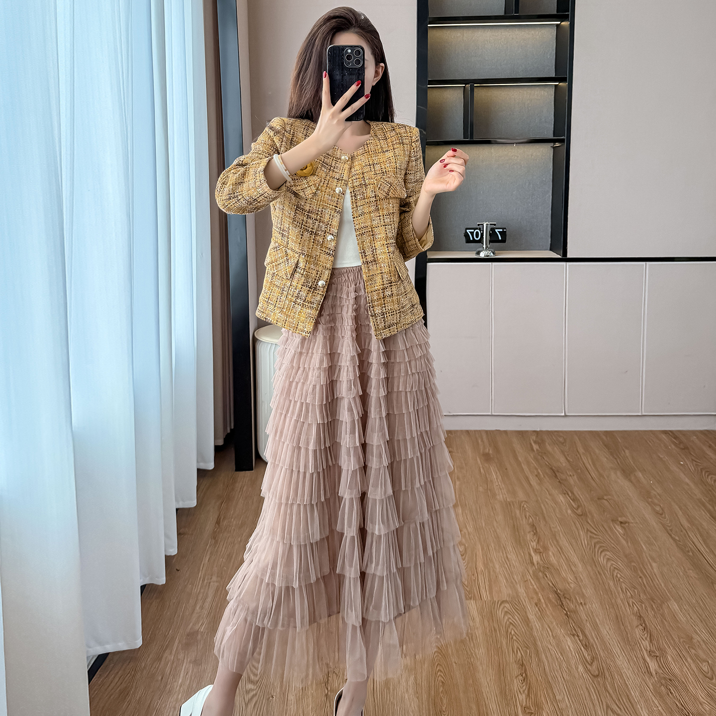 FA52896# 小香风外套女秋高级感上衣+网纱蓬蓬蛋糕裙法式半身裙 服裝批發女裝批發服飾貨源