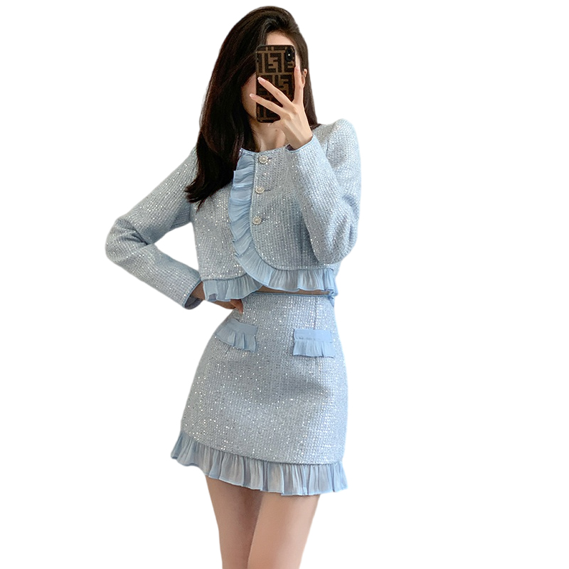 FA52901# 法式网红小香风套装短款外套女秋季新款时尚名媛半身裙两件套 服裝批發女裝批發服飾貨源