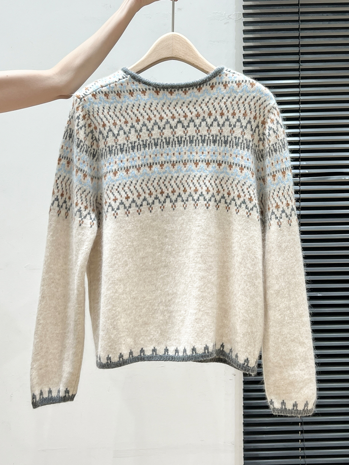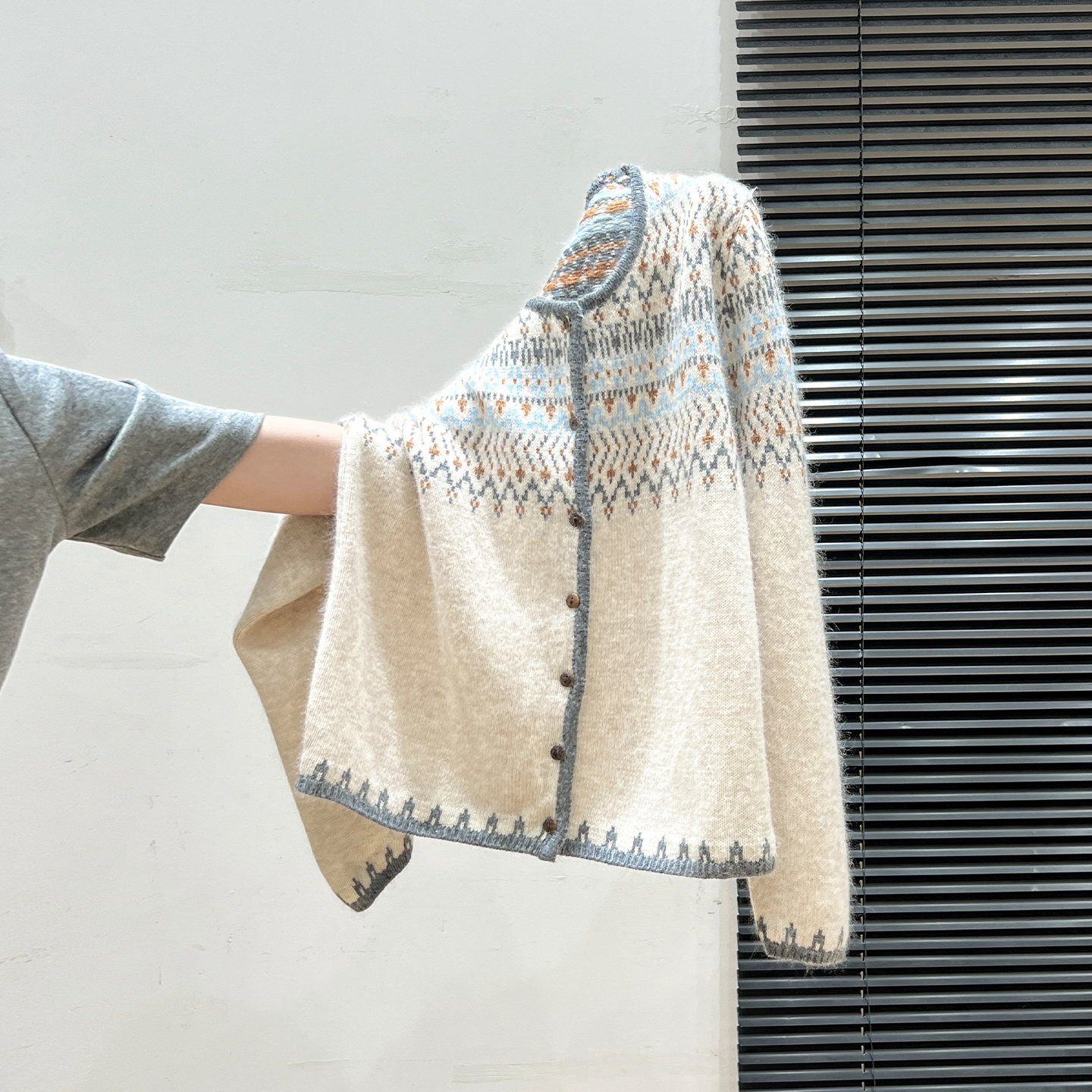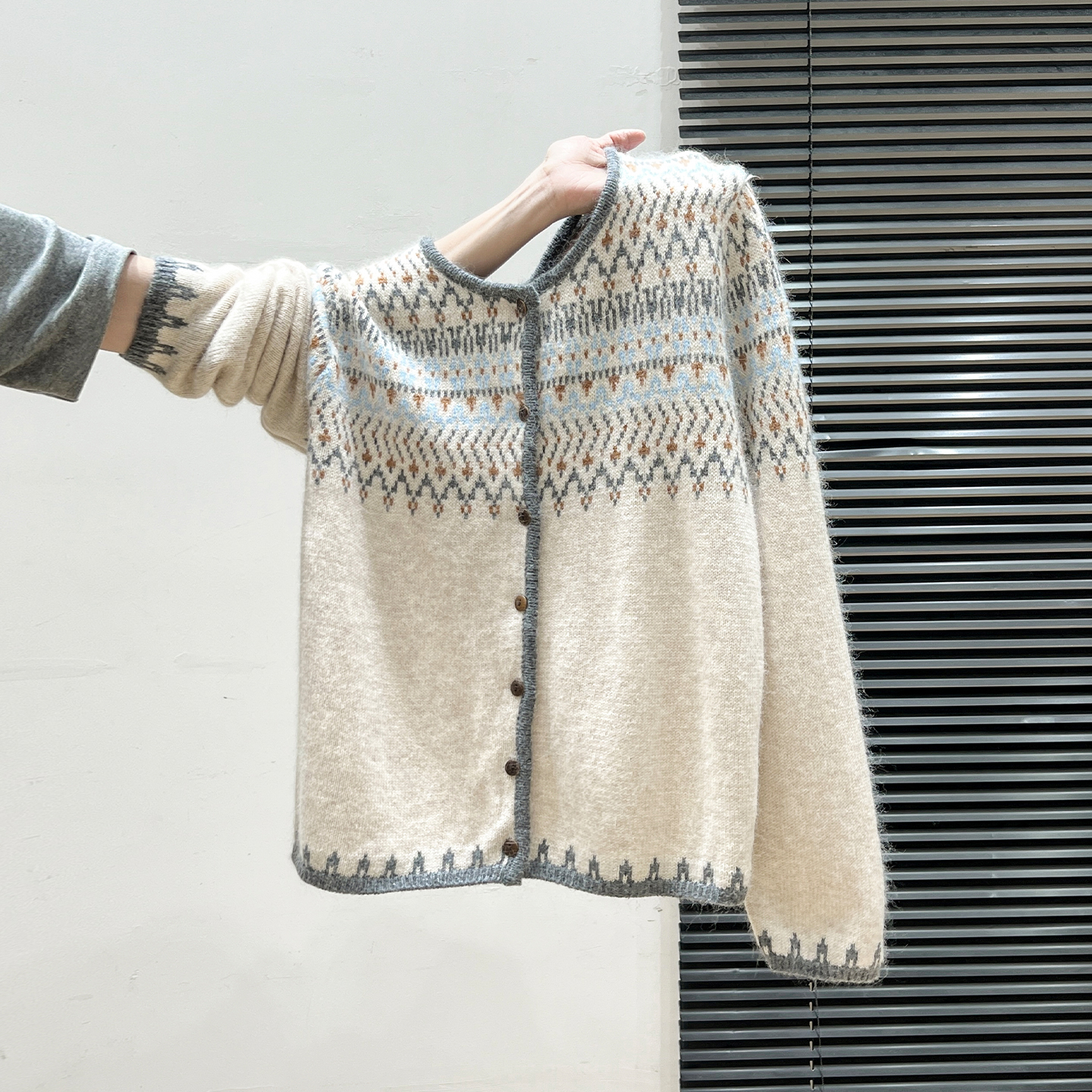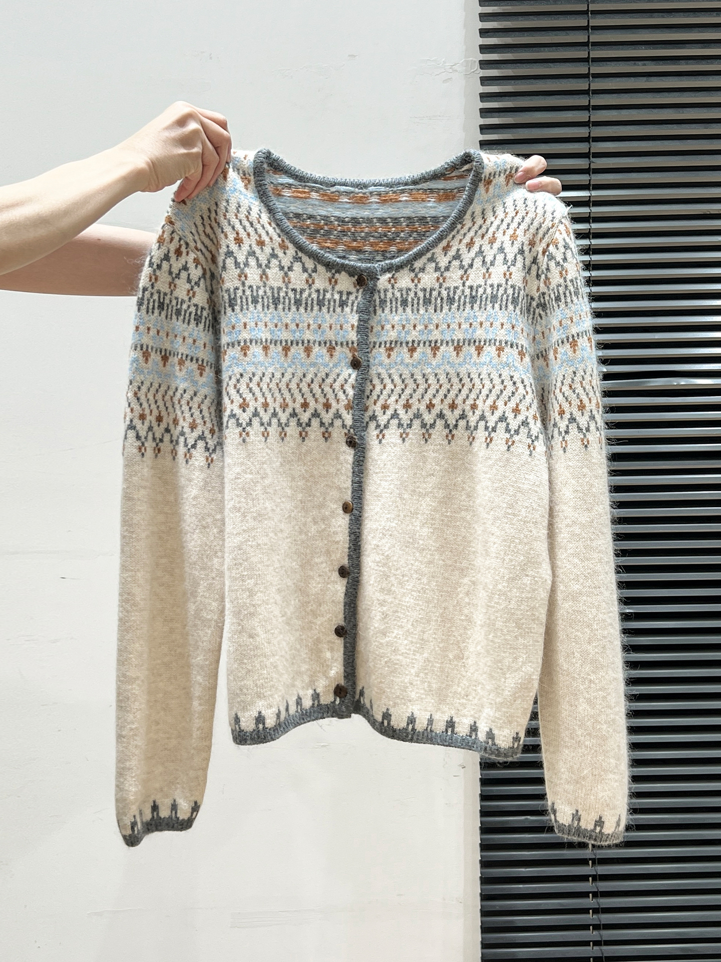 安迪绒长袖针织女秋冬新款提花开衫外套上衣圆领保暖毛衣 服裝批發女裝批發服飾貨源
