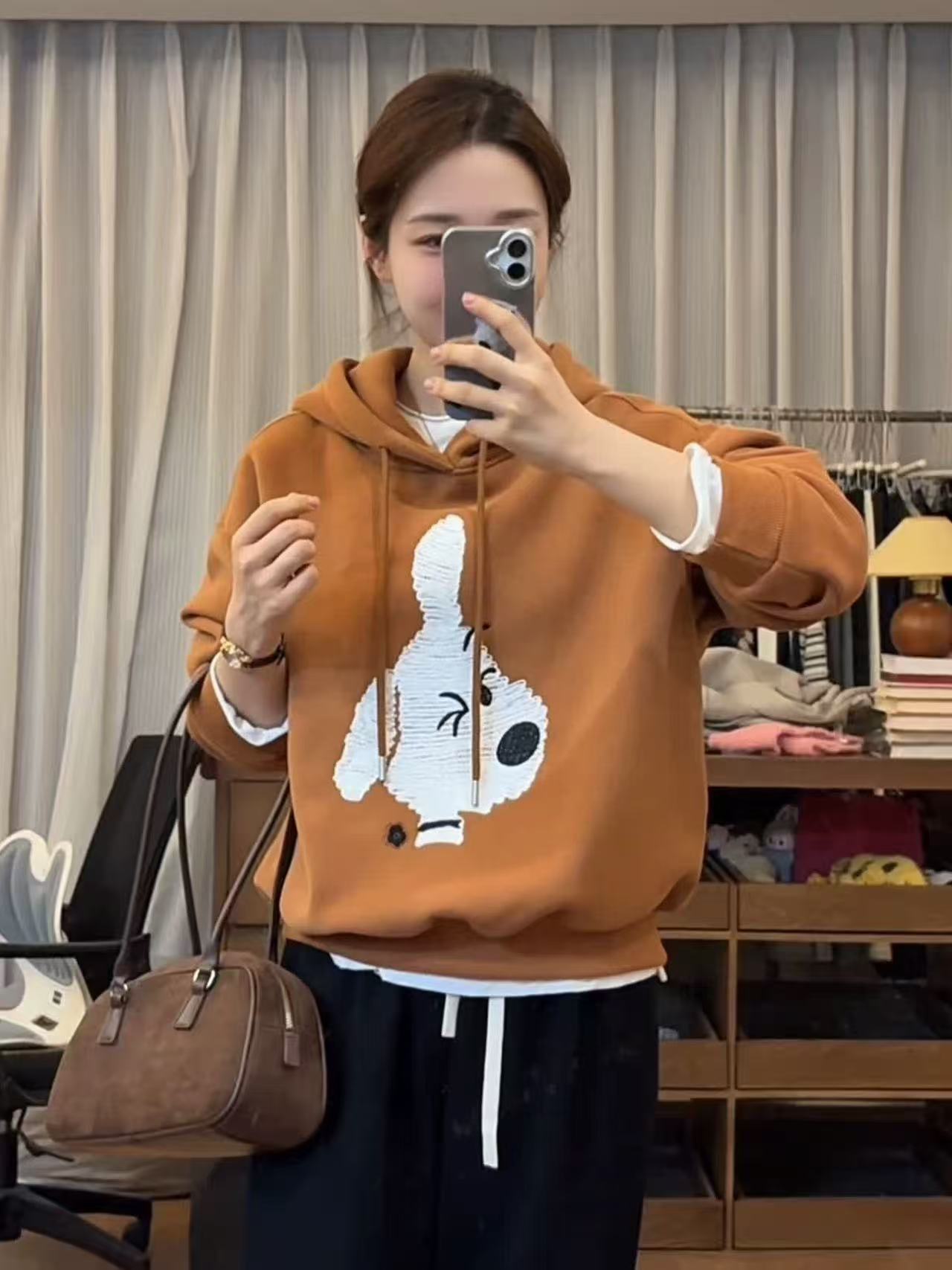 纯棉华棉复合奥粒绒卫衣女秋冬季卡通印花潮连帽保暖上衣 服裝批發女裝批發服飾貨源