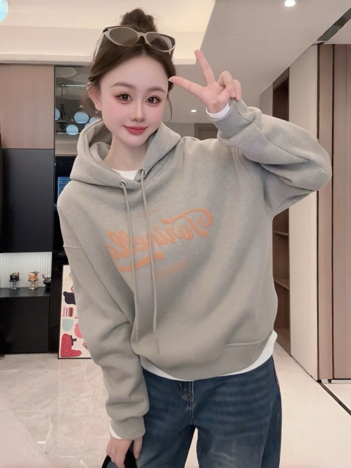 纯棉华棉复合奥粒绒卫衣女秋冬季新款潮宽松连帽保暖上衣 服裝批發女裝批發服飾貨源