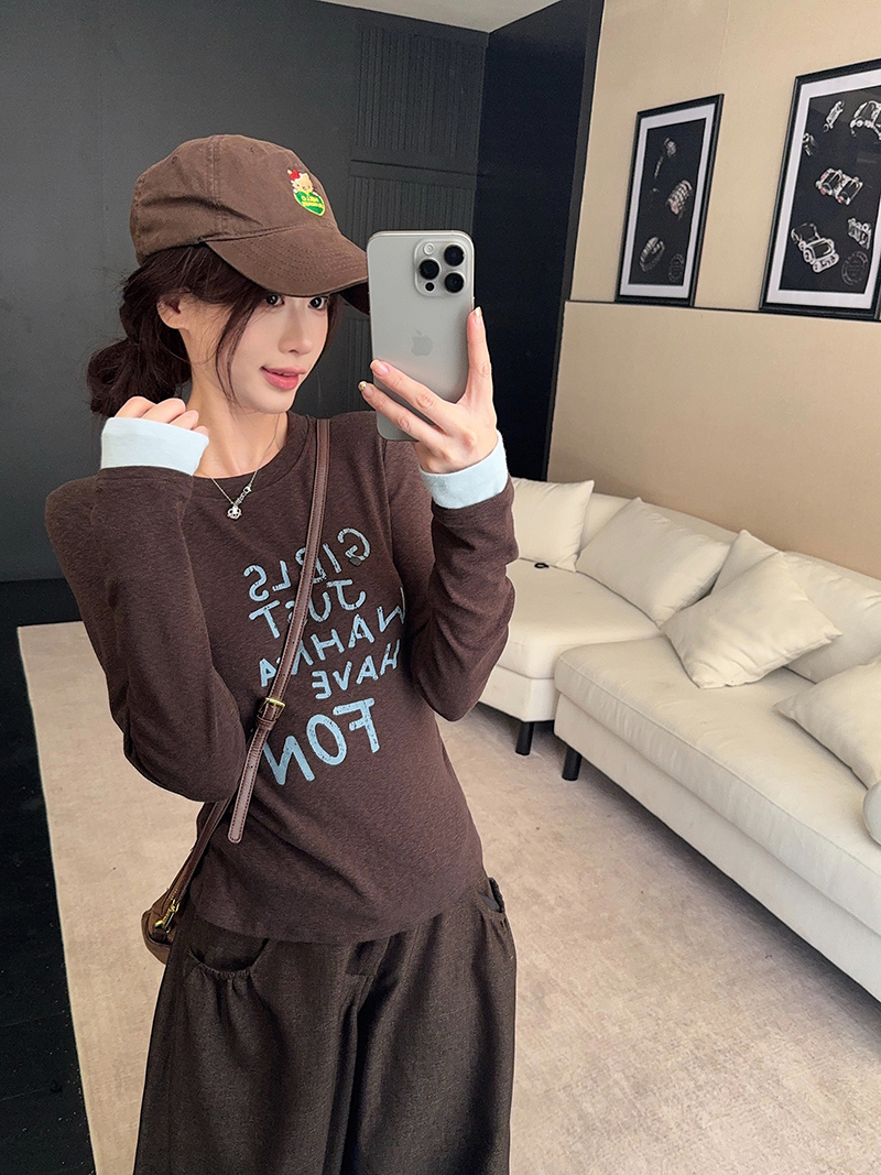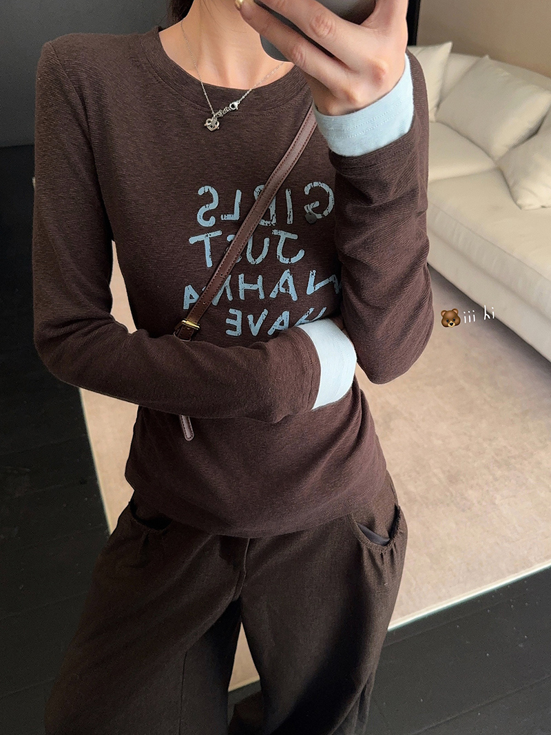 雪花羊绒长袖t恤打底衫女薄款春秋撞色新款宽松圆领上衣 服裝批發女裝批發服飾貨源