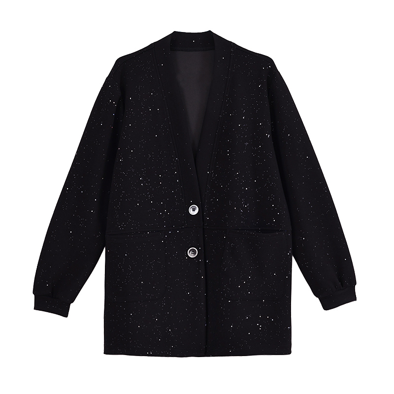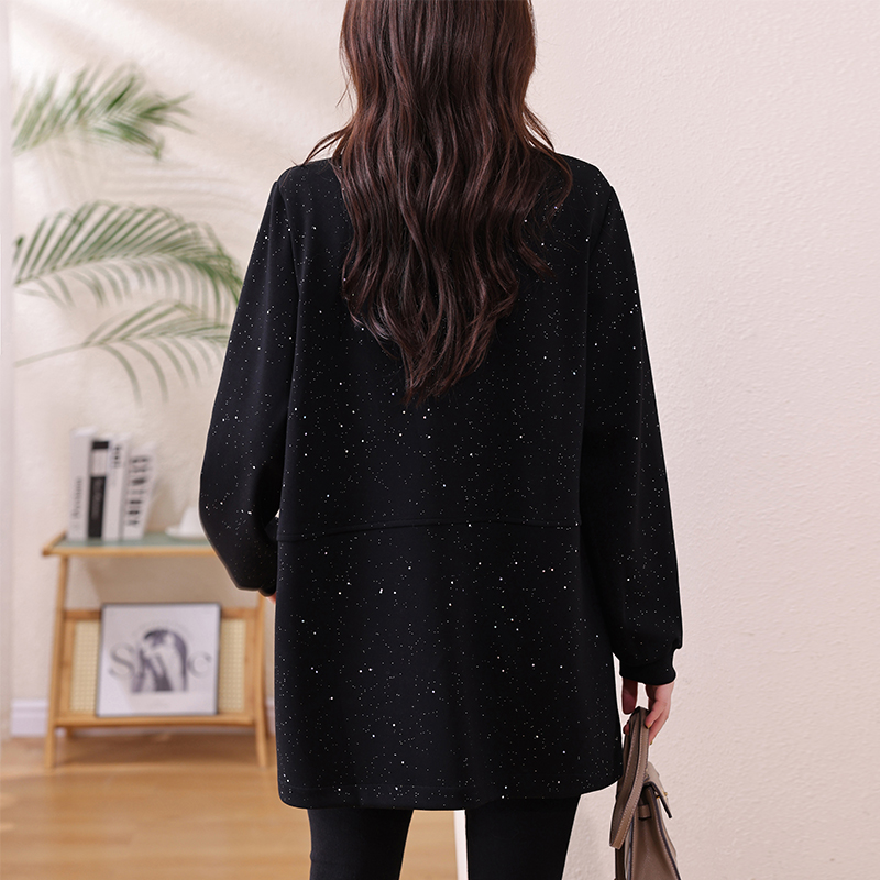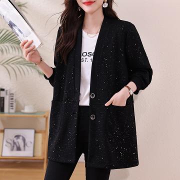 FA53017# 大码女装春新款黑色开衫胖mm宽松休闲亮闪闪百搭外套 服裝批發女裝批發服飾貨源