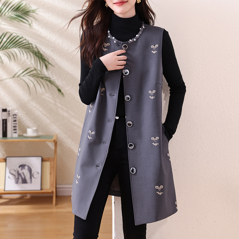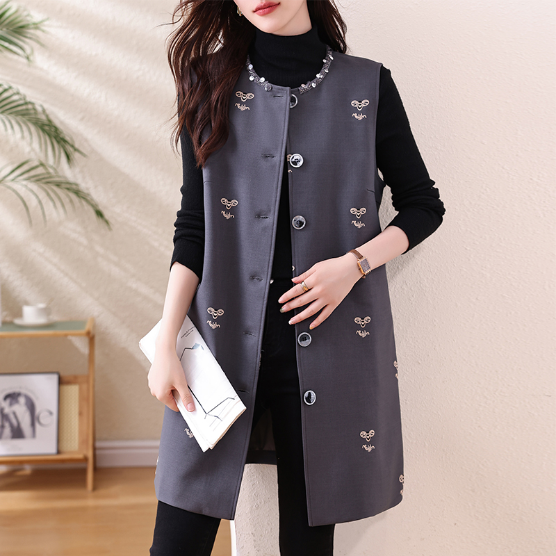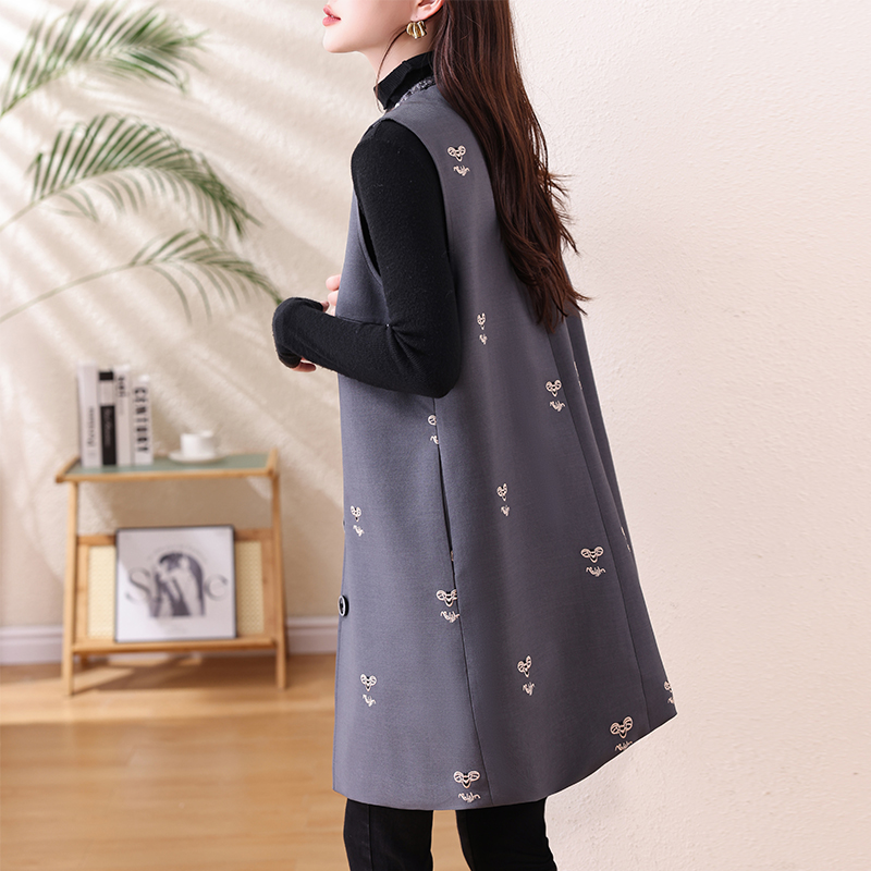 FA53019# 大码小香风马甲女春新款胖mm中长款开衫坎肩外套 服裝批發女裝批發服飾貨源
