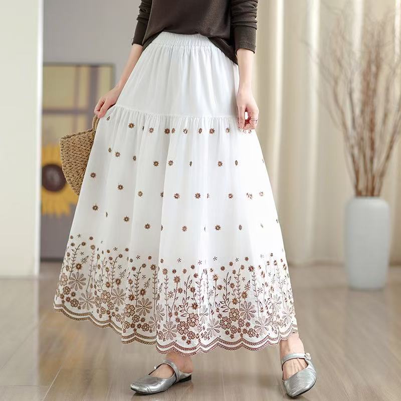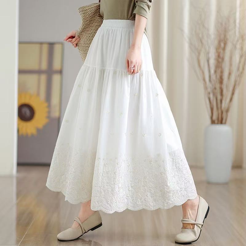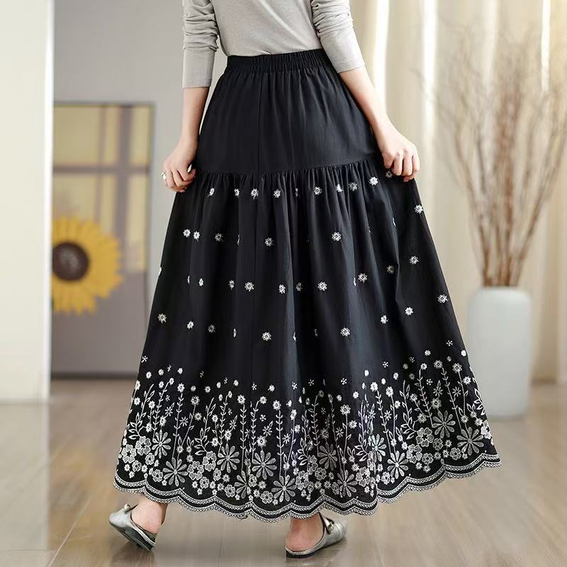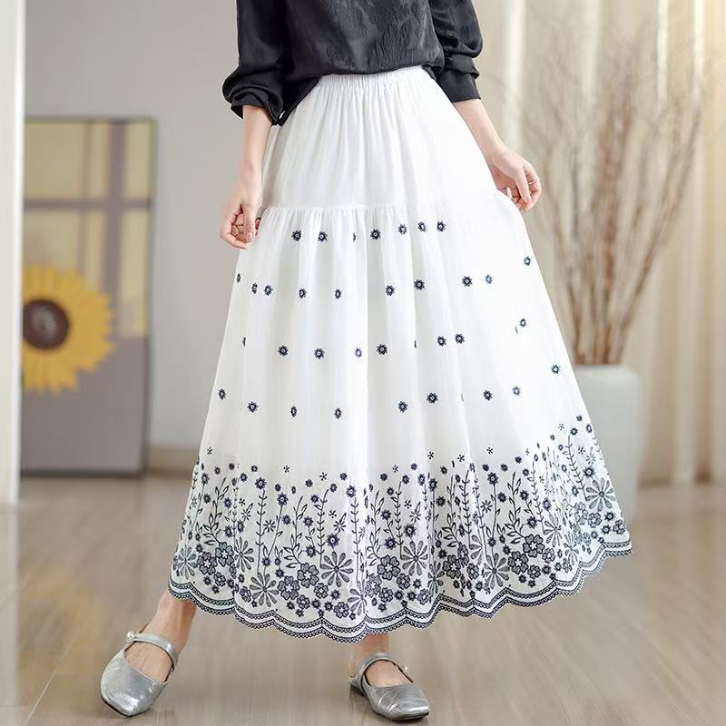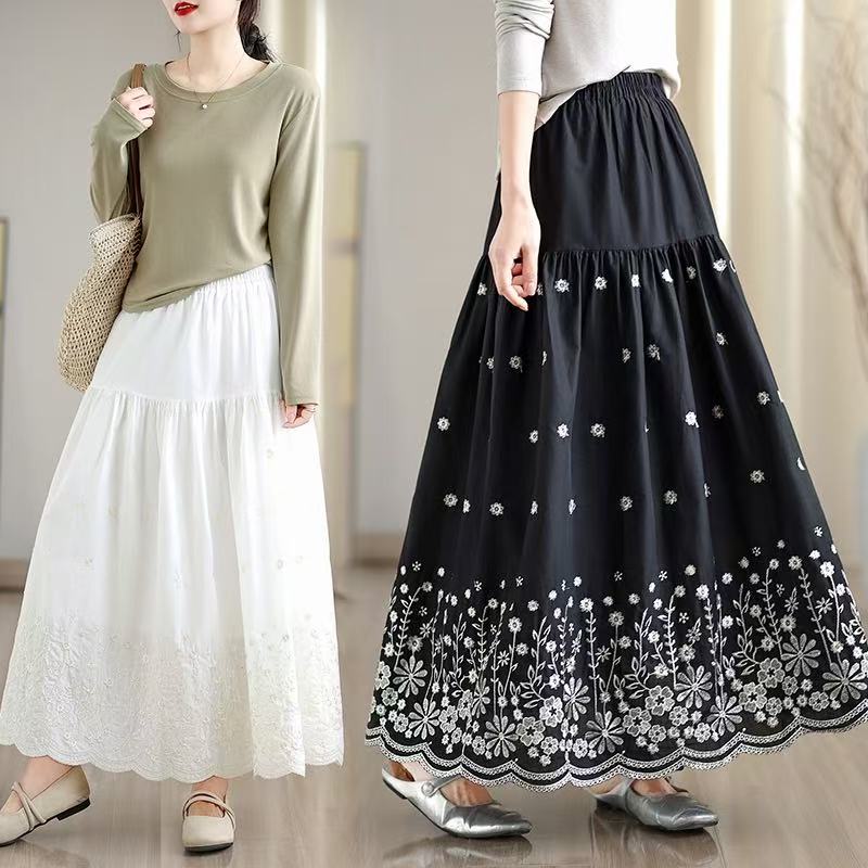 FA53422# 拼接碎花刺绣半身裙女春季新款温柔风高腰显瘦蛋糕裙A字长裙 服裝批發女裝批發服飾貨源