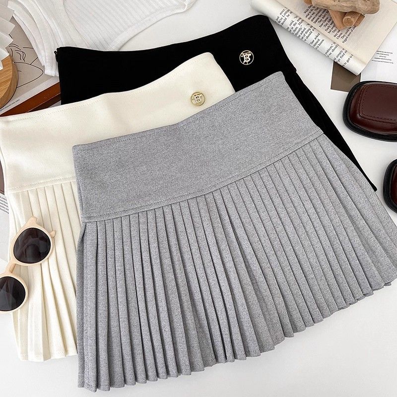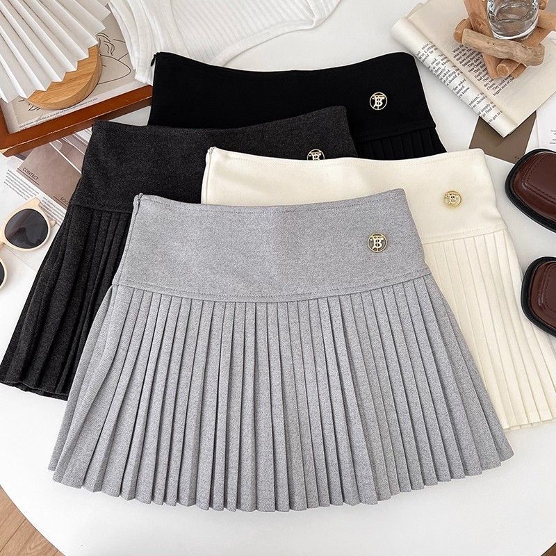 FA53433# 纯欲时尚百搭毛呢高腰显瘦半身裙防走光短裙百褶裙a字裙蓬蓬裙女 服裝批發女裝批發服飾貨源