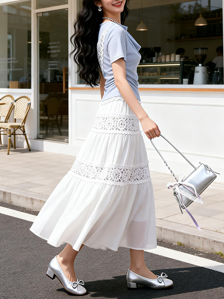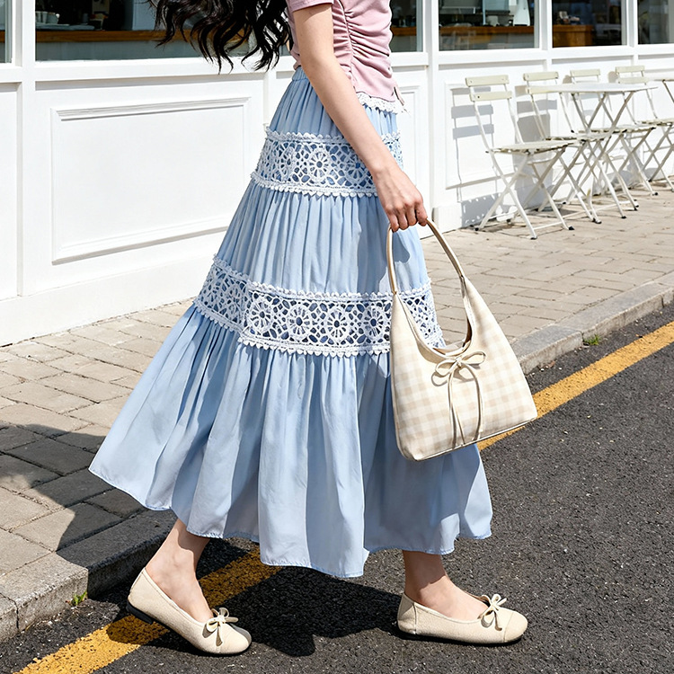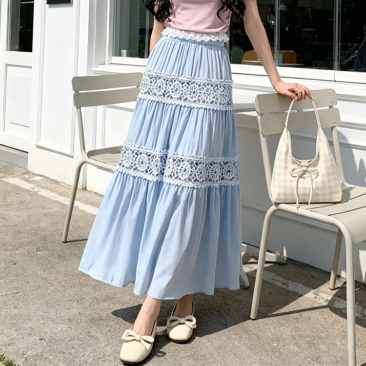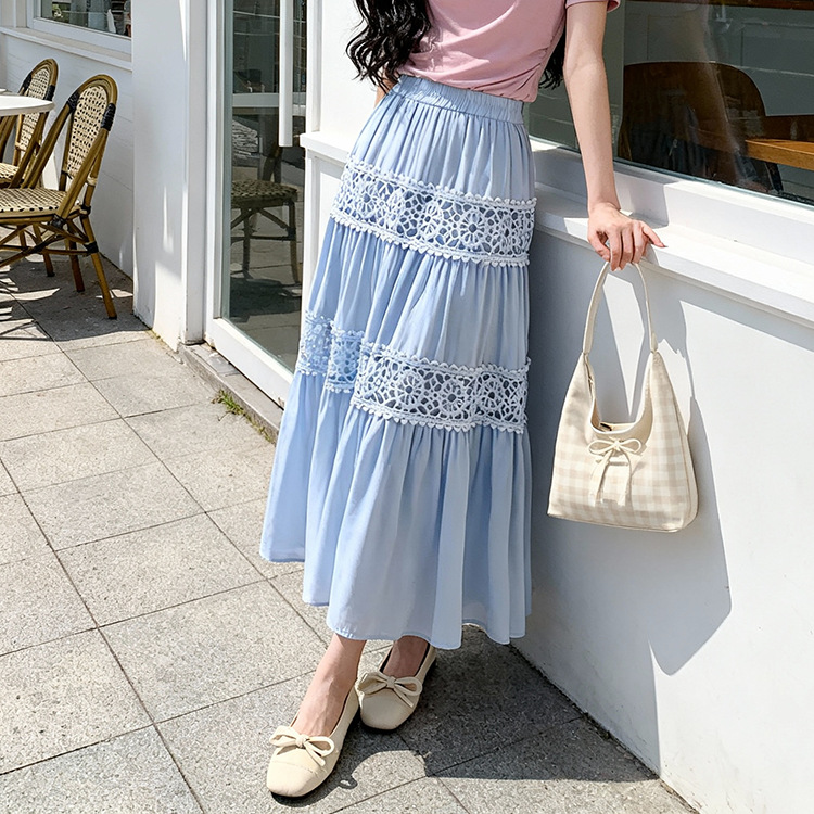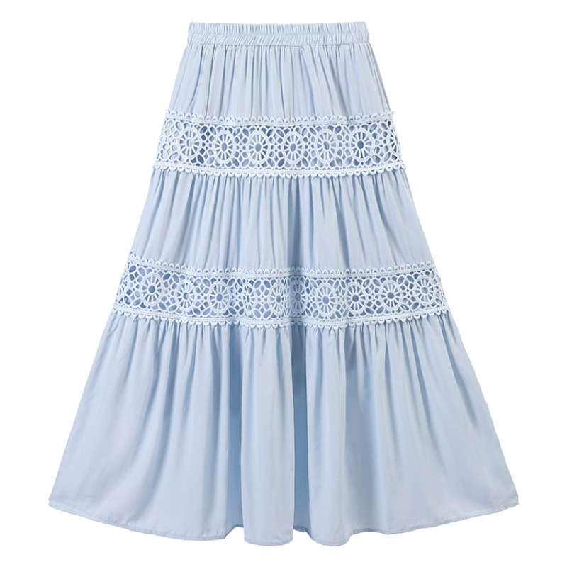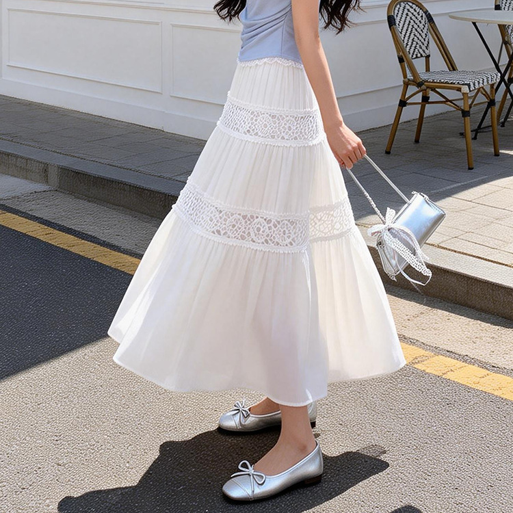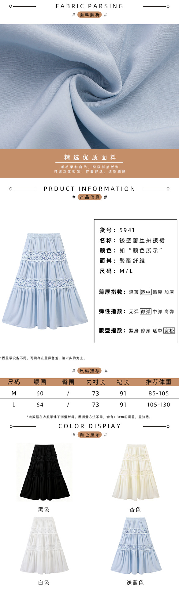 FA53444# 简约百搭气质感浪漫镂空复古蕾丝拼接蛋糕裙女中长款半身裙 服裝批發女裝批發服飾貨源