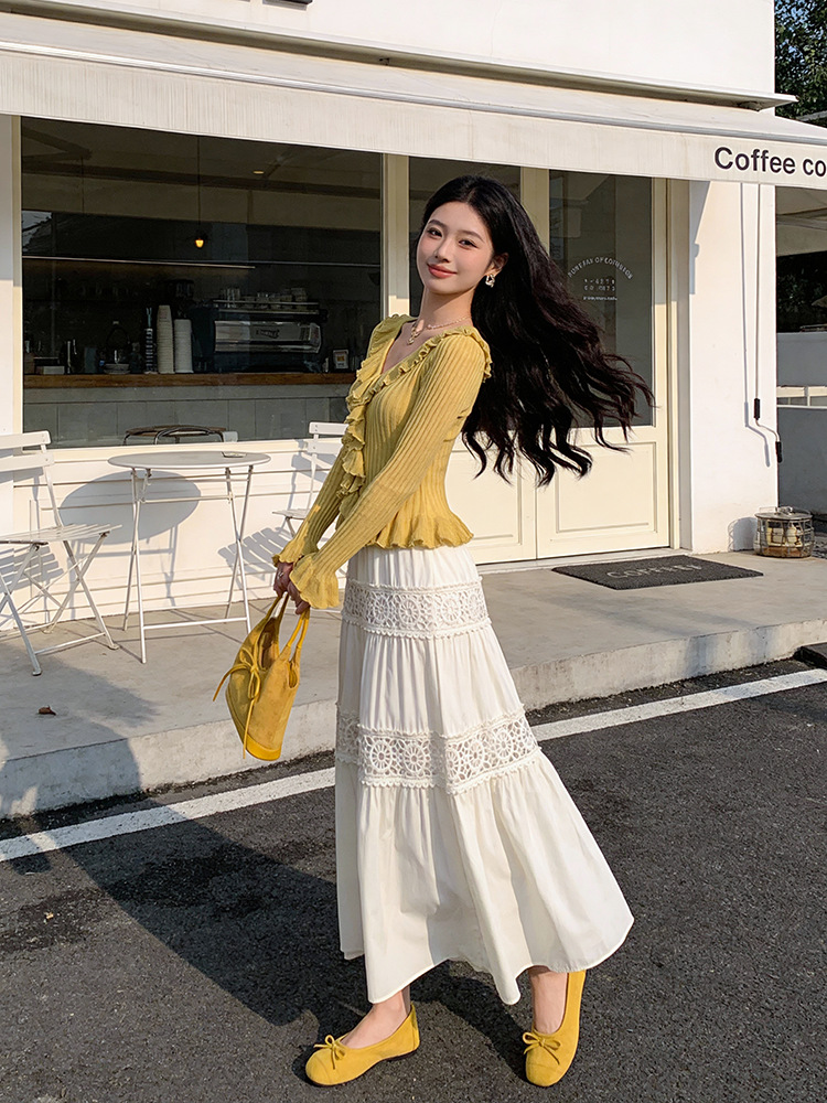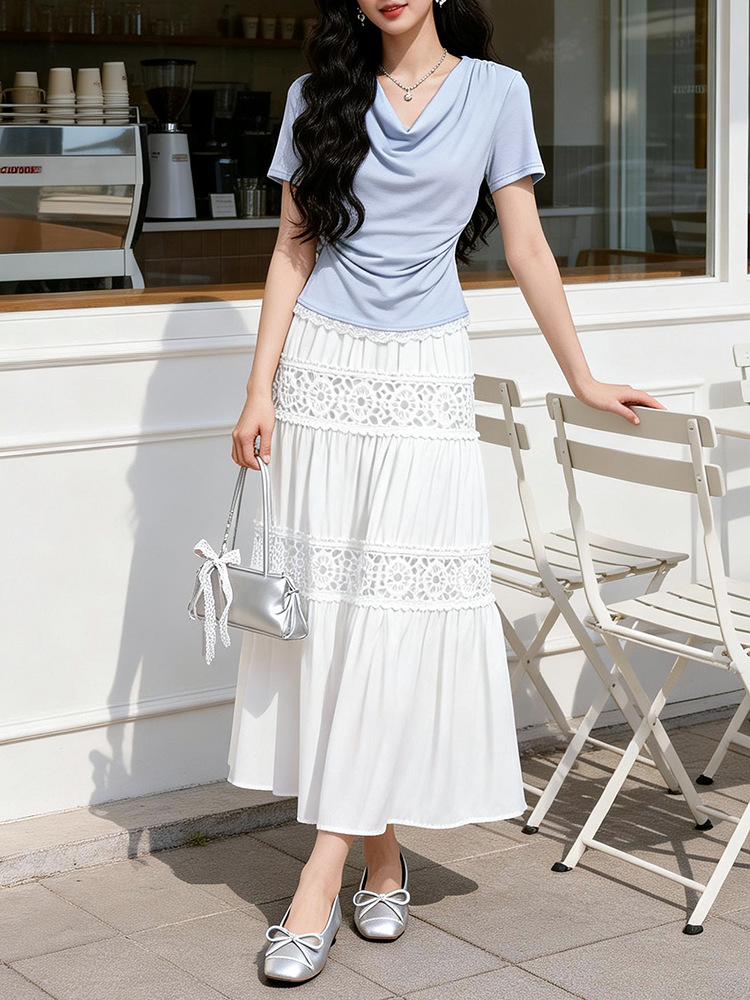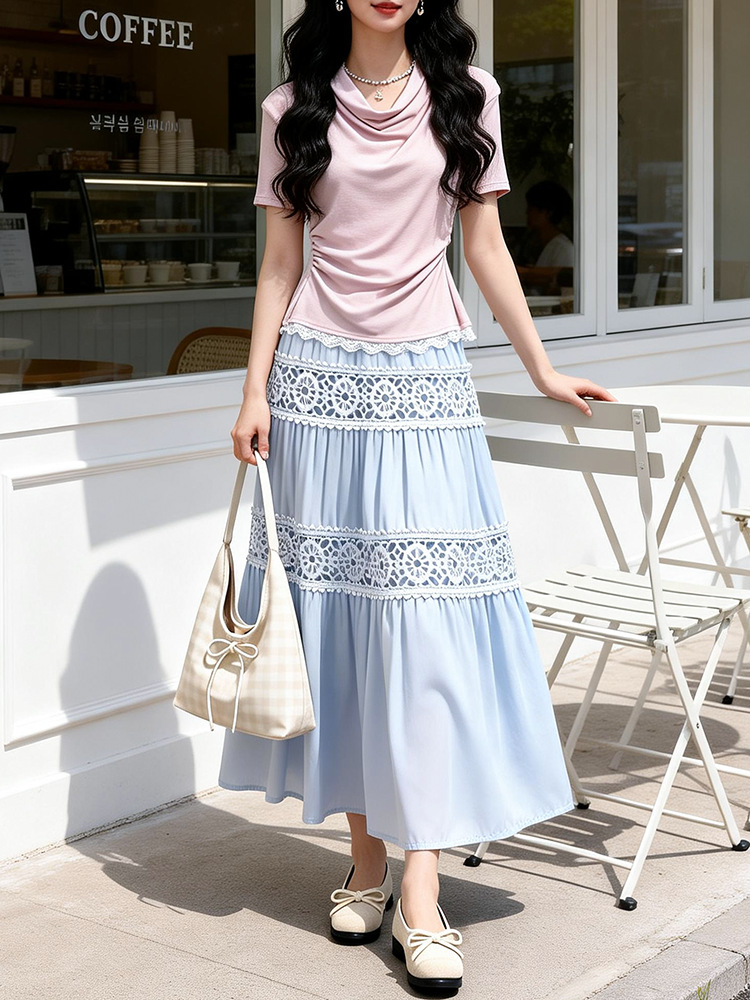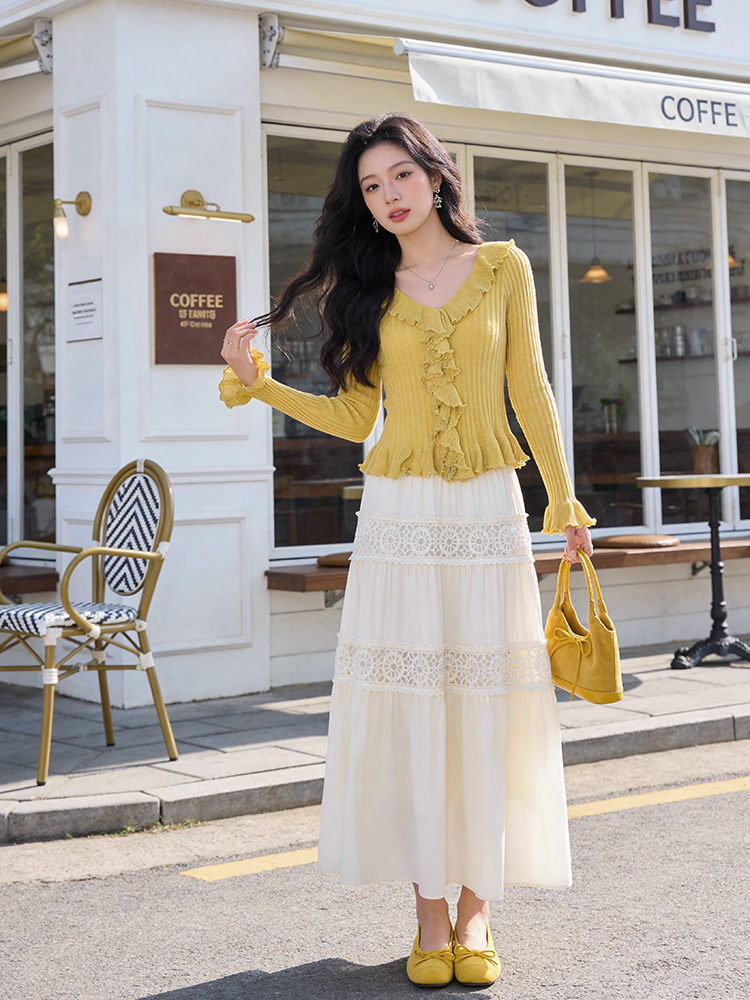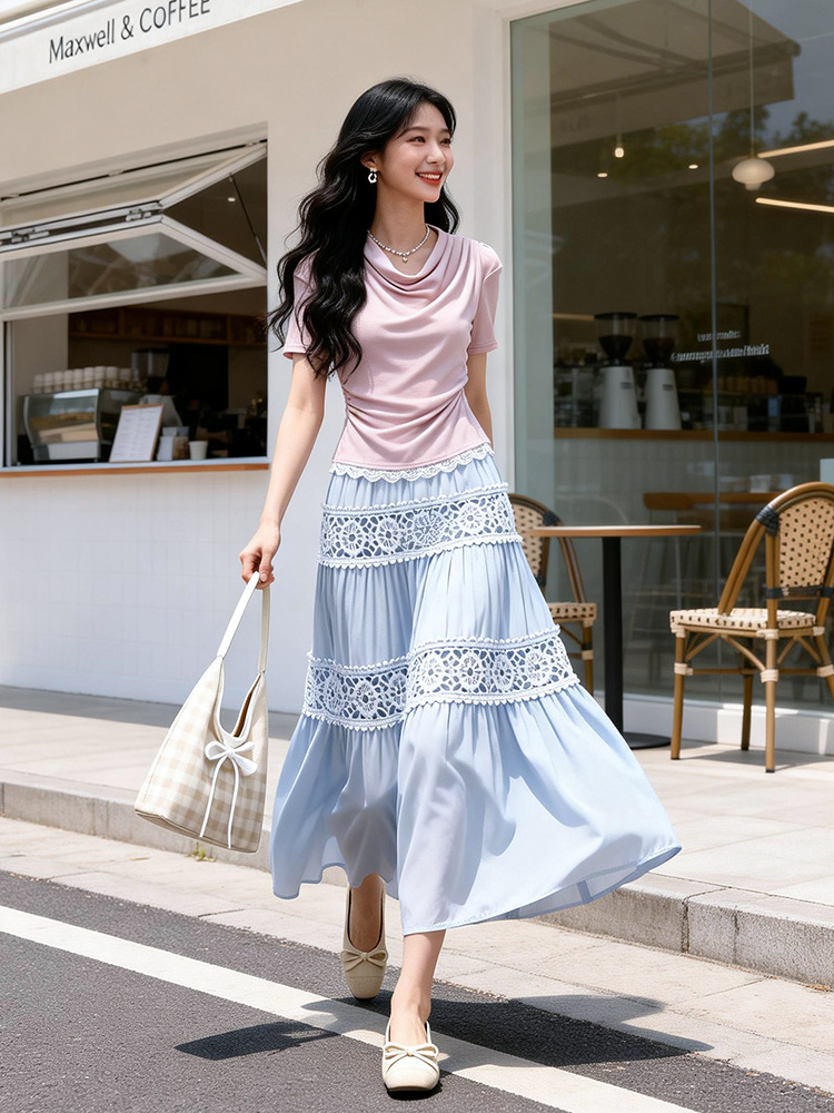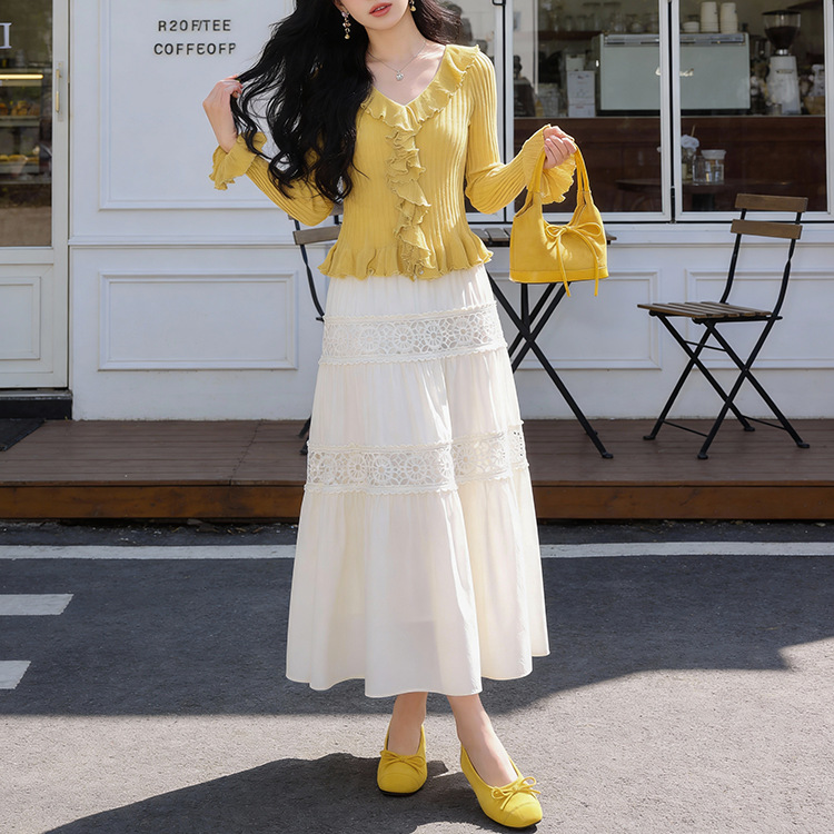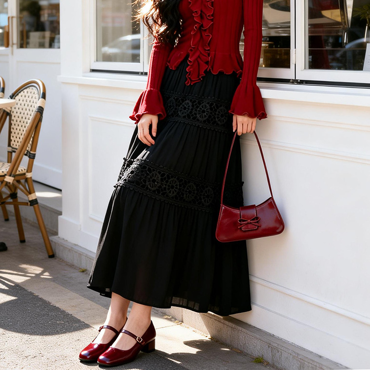 FA53444# 简约百搭气质感浪漫镂空复古蕾丝拼接蛋糕裙女中长款半身裙 服裝批發女裝批發服飾貨源