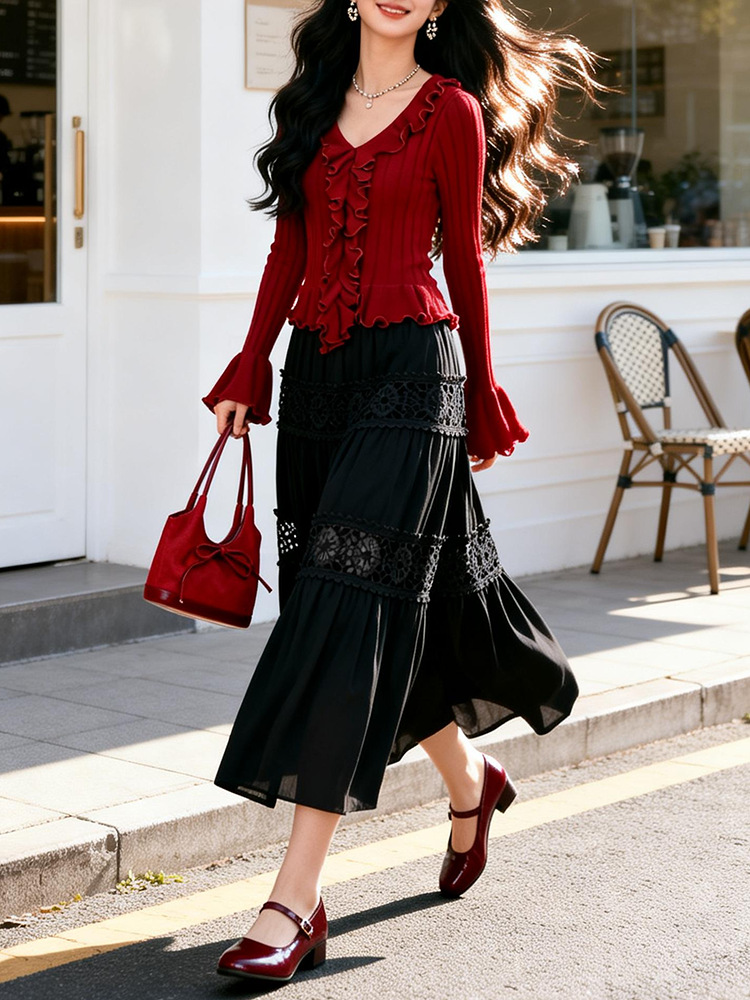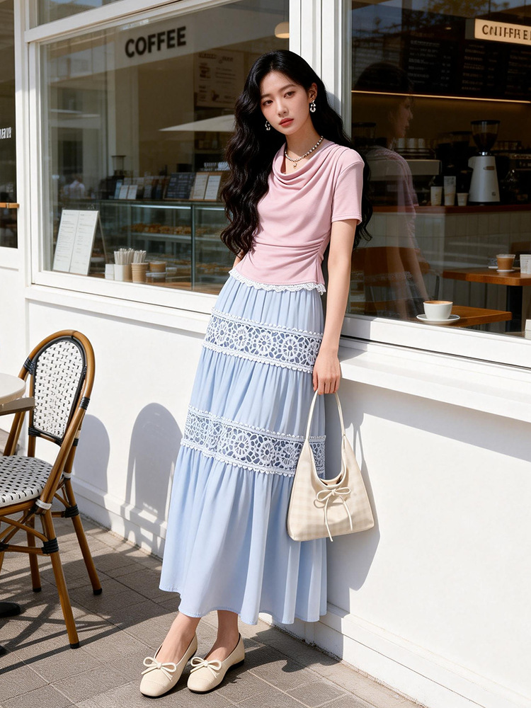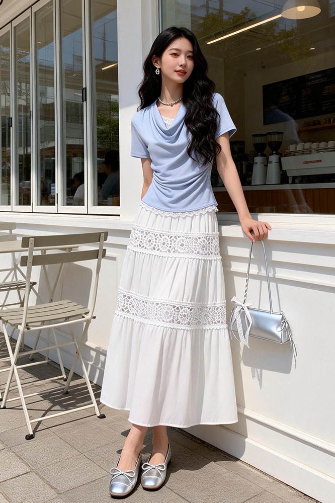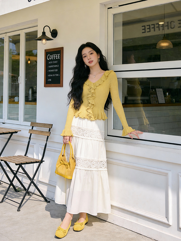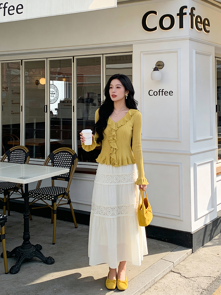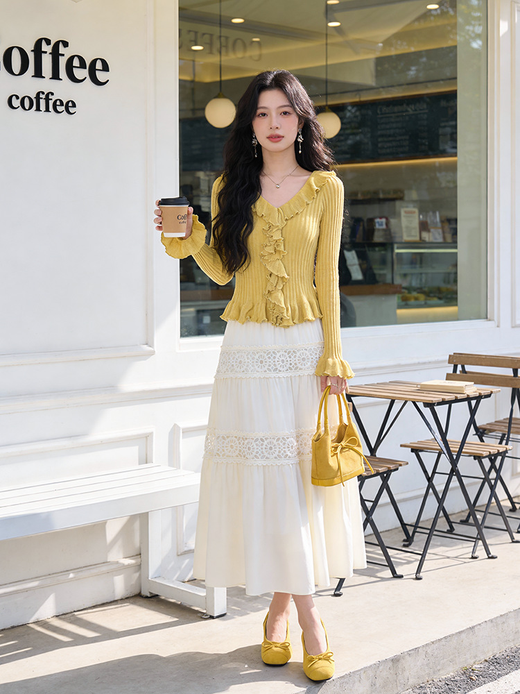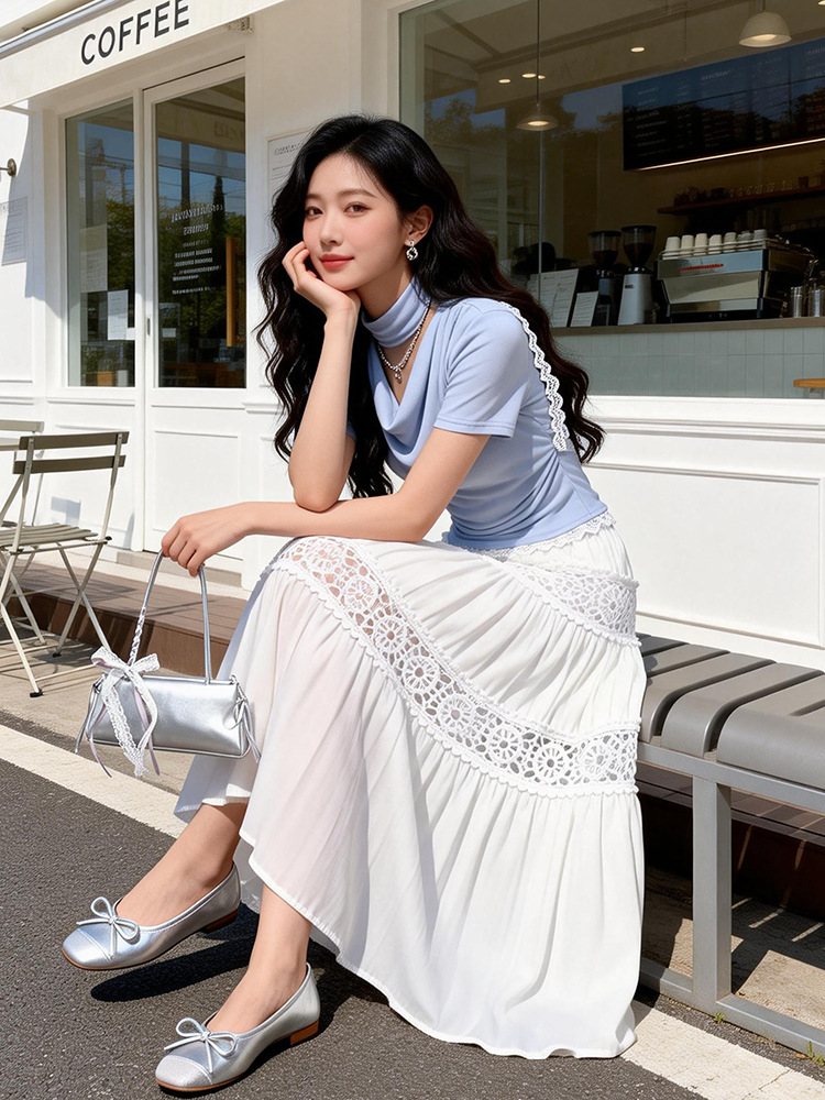 FA53444# 简约百搭气质感浪漫镂空复古蕾丝拼接蛋糕裙女中长款半身裙 服裝批發女裝批發服飾貨源