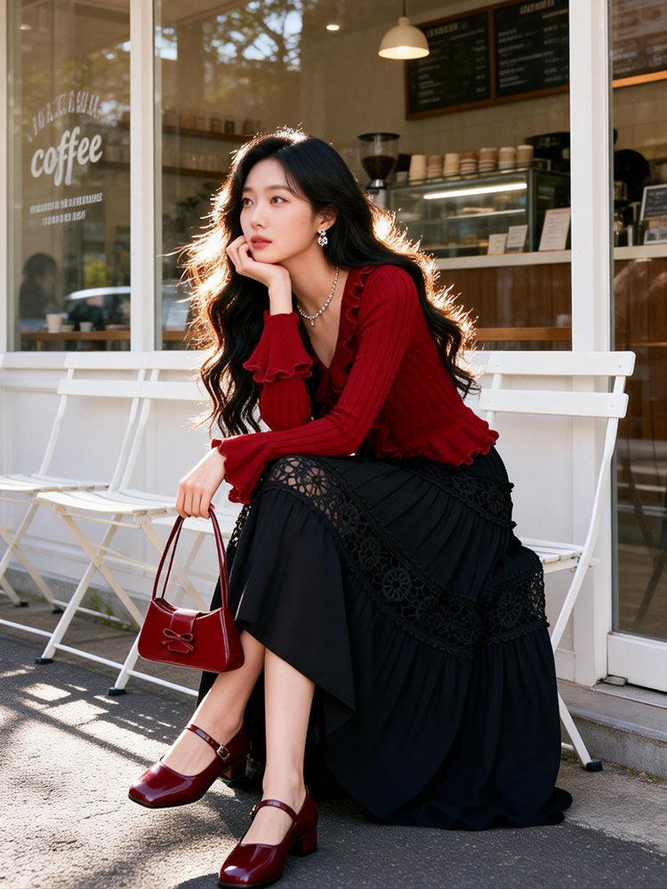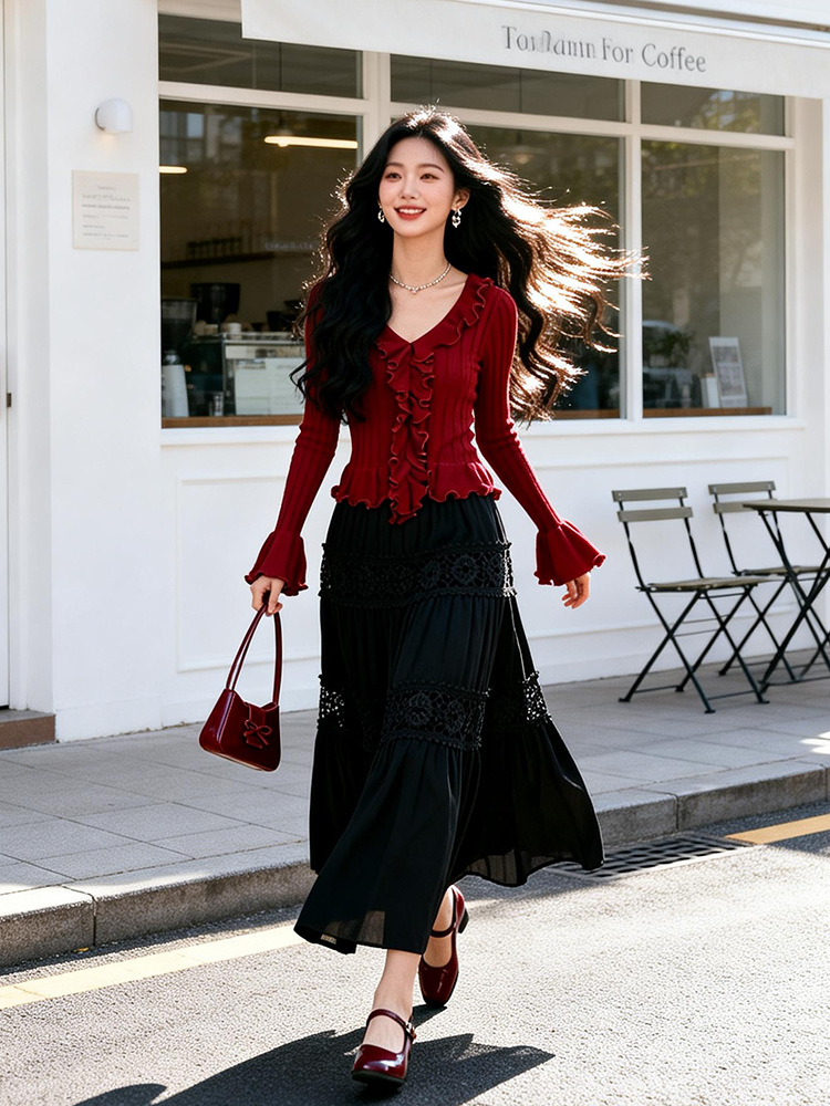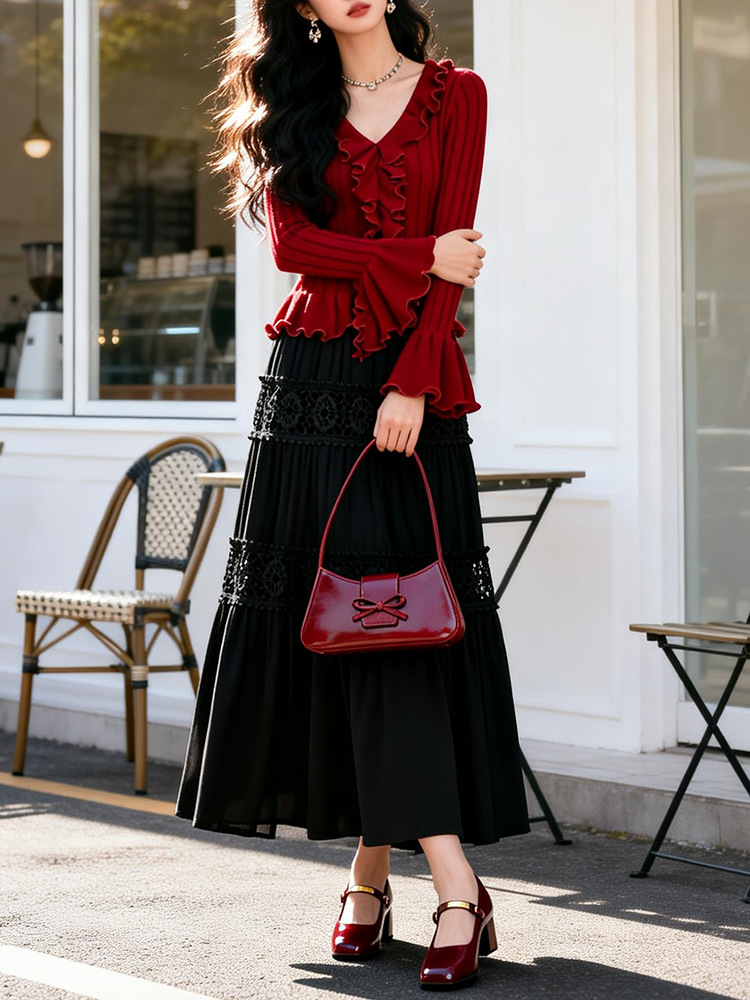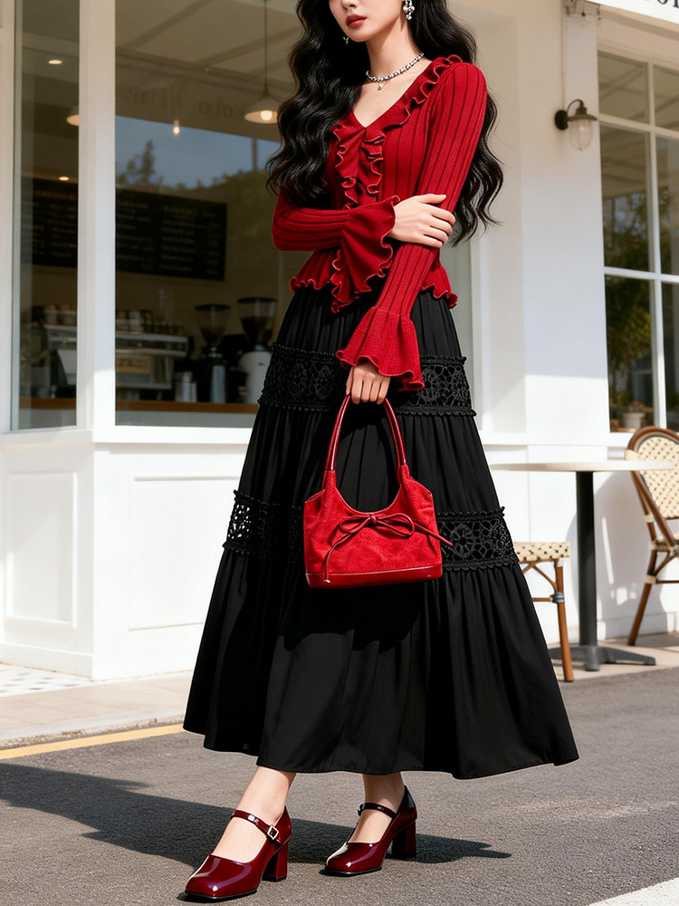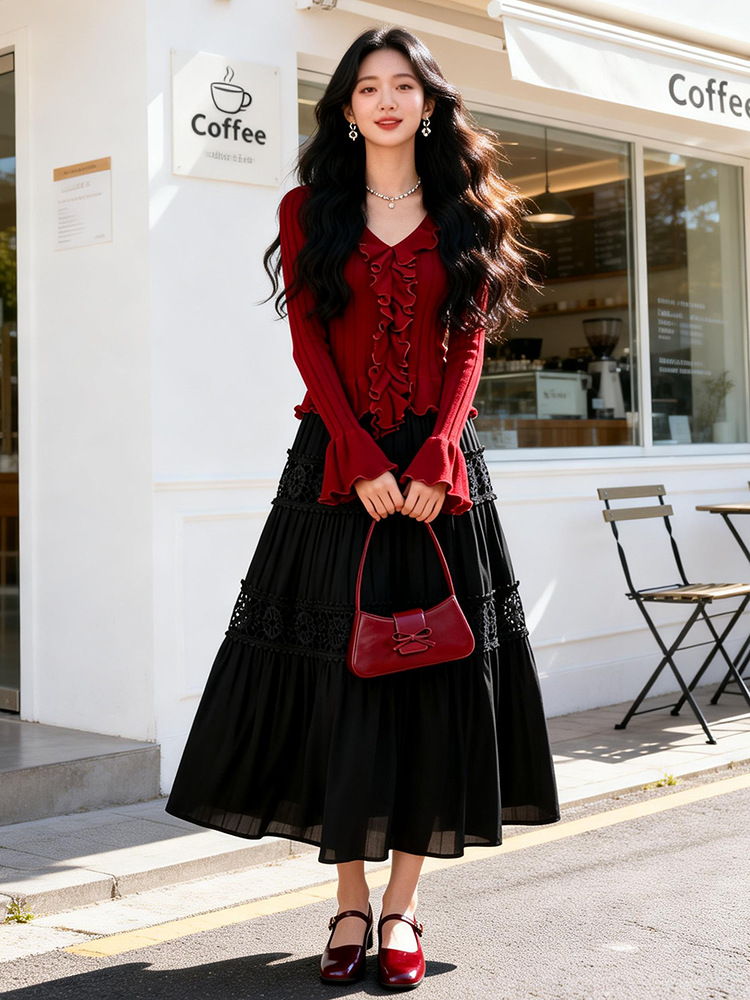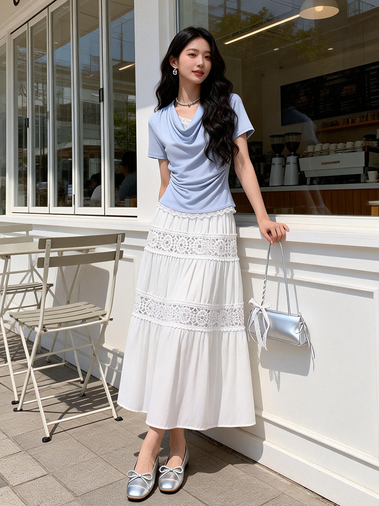FA53444# 简约百搭气质感浪漫镂空复古蕾丝拼接蛋糕裙女中长款半身裙 服裝批發女裝批發服飾貨源