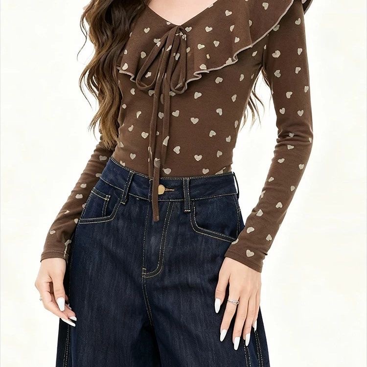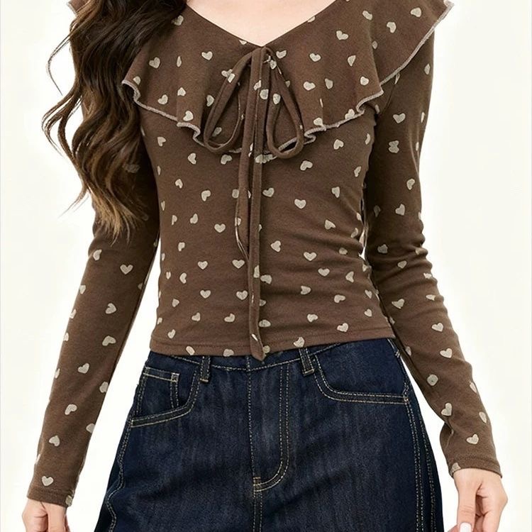 FA53461# 韩版新款温柔淑女T恤波点系带早春修身长袖秋冬上衣设计显瘦 服裝批發女裝批發服飾貨源
