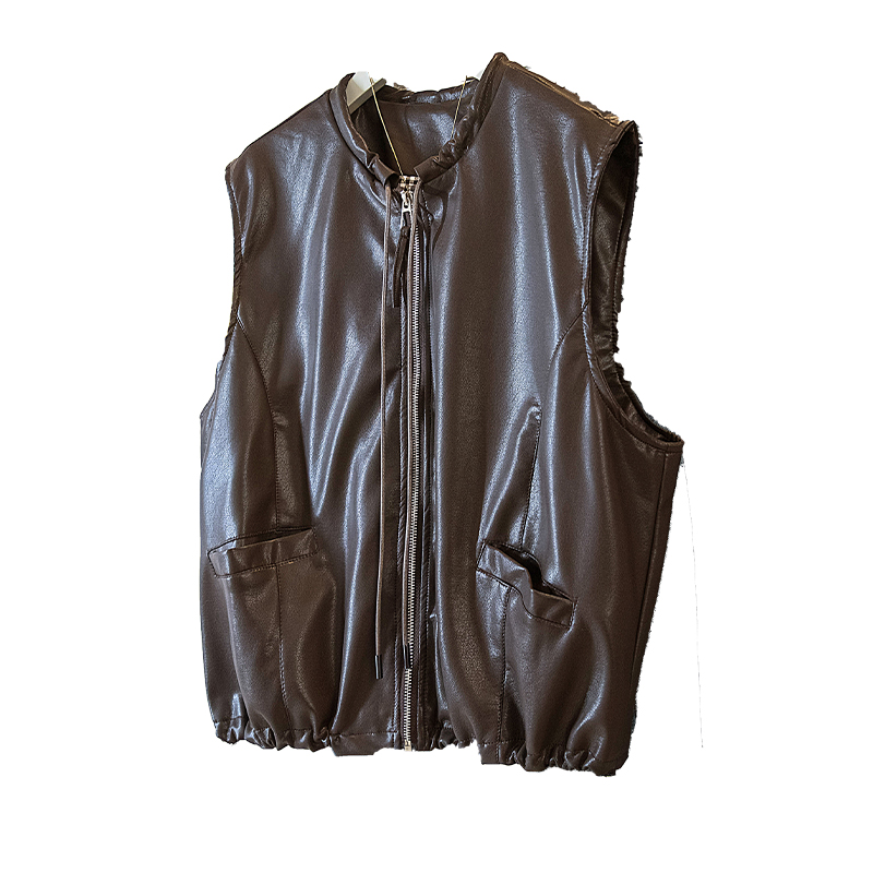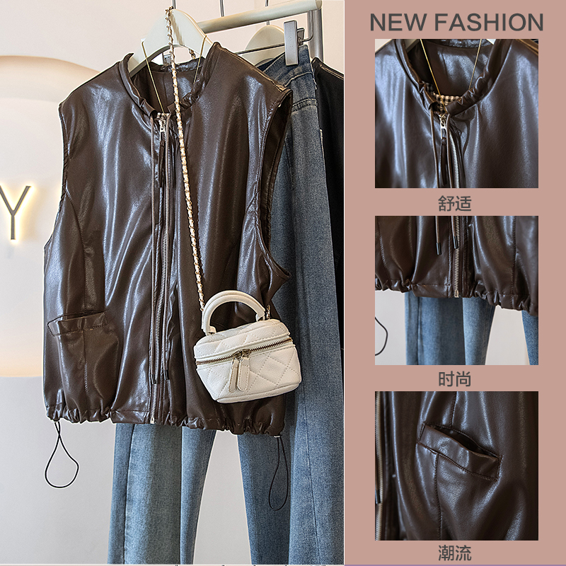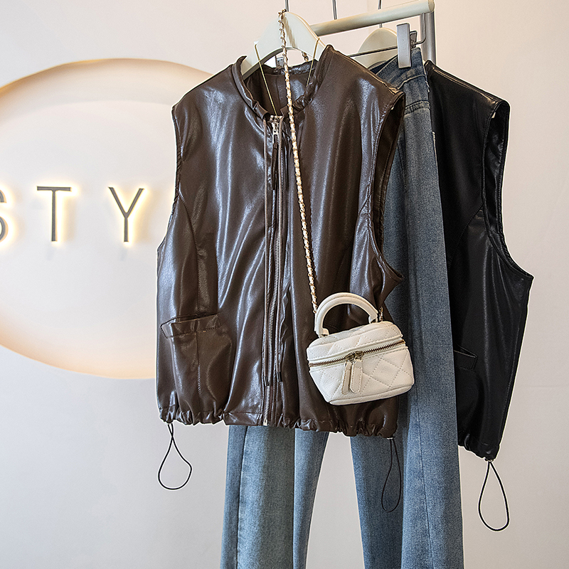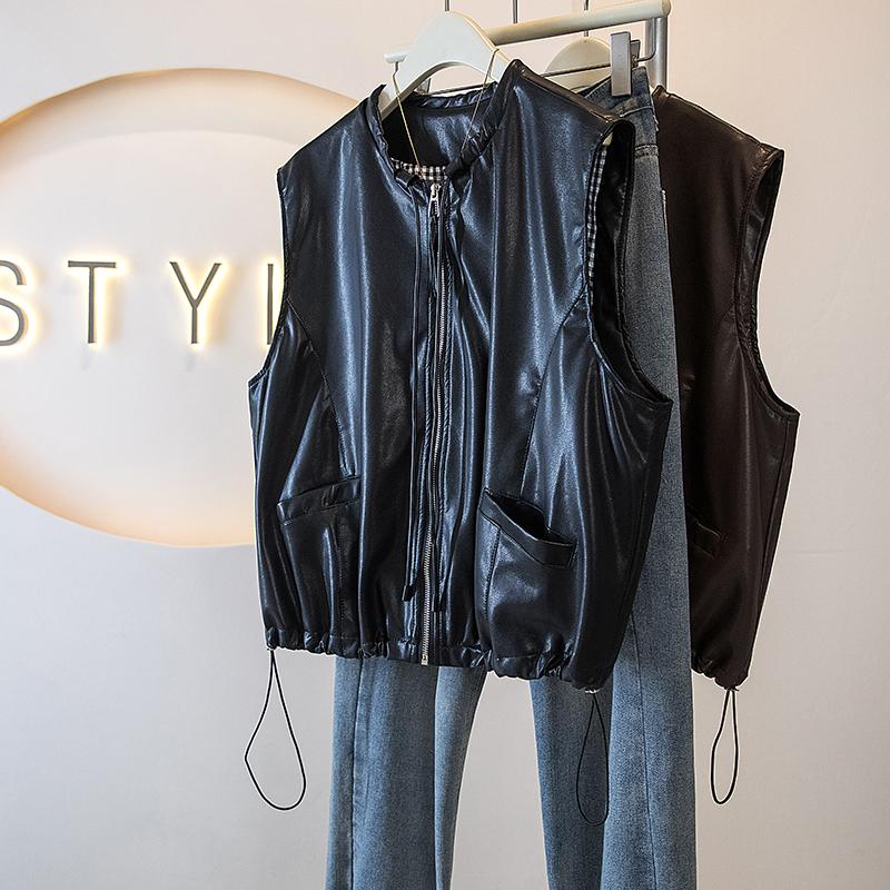 FA53468# 大码款女装新款韩系高级感百搭抽绳阔版机车马夹背心外套马甲 服裝批發女裝批發服飾貨源