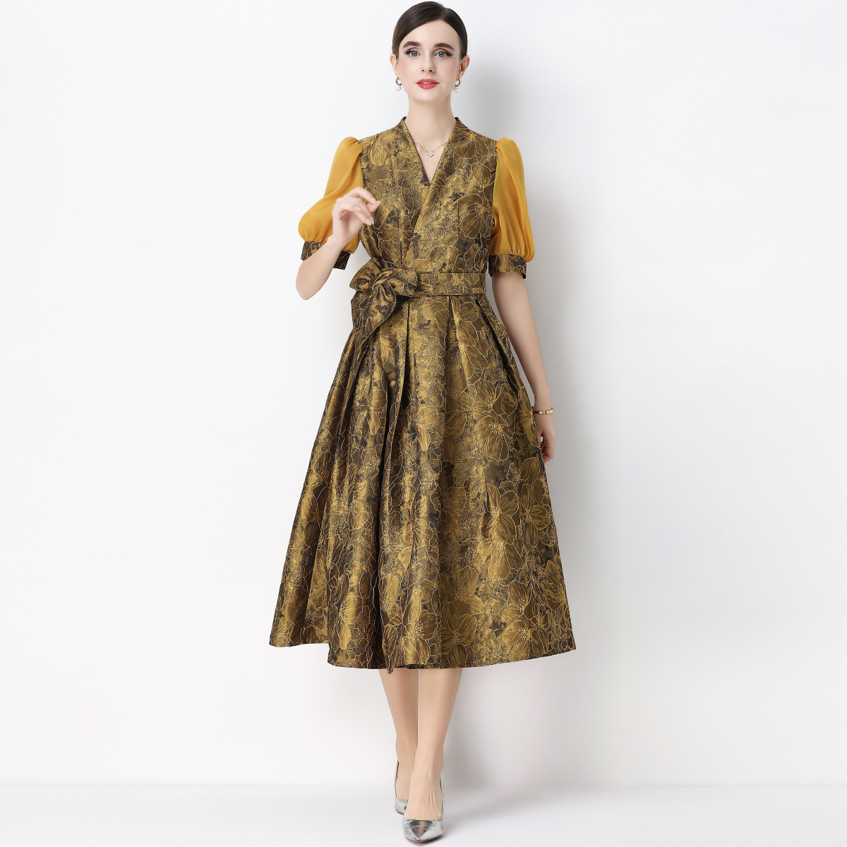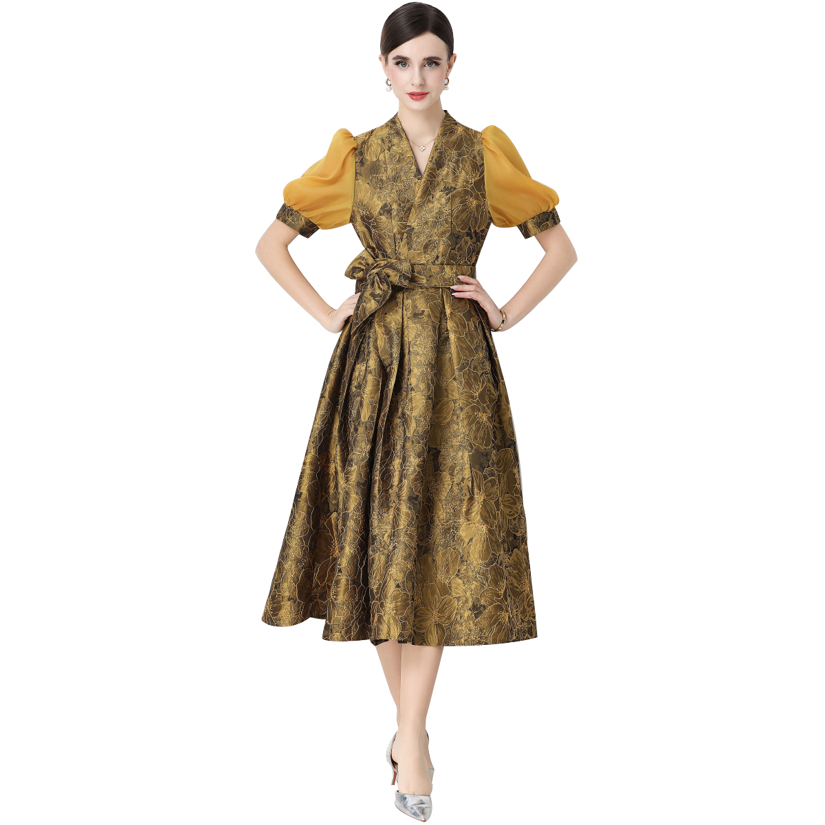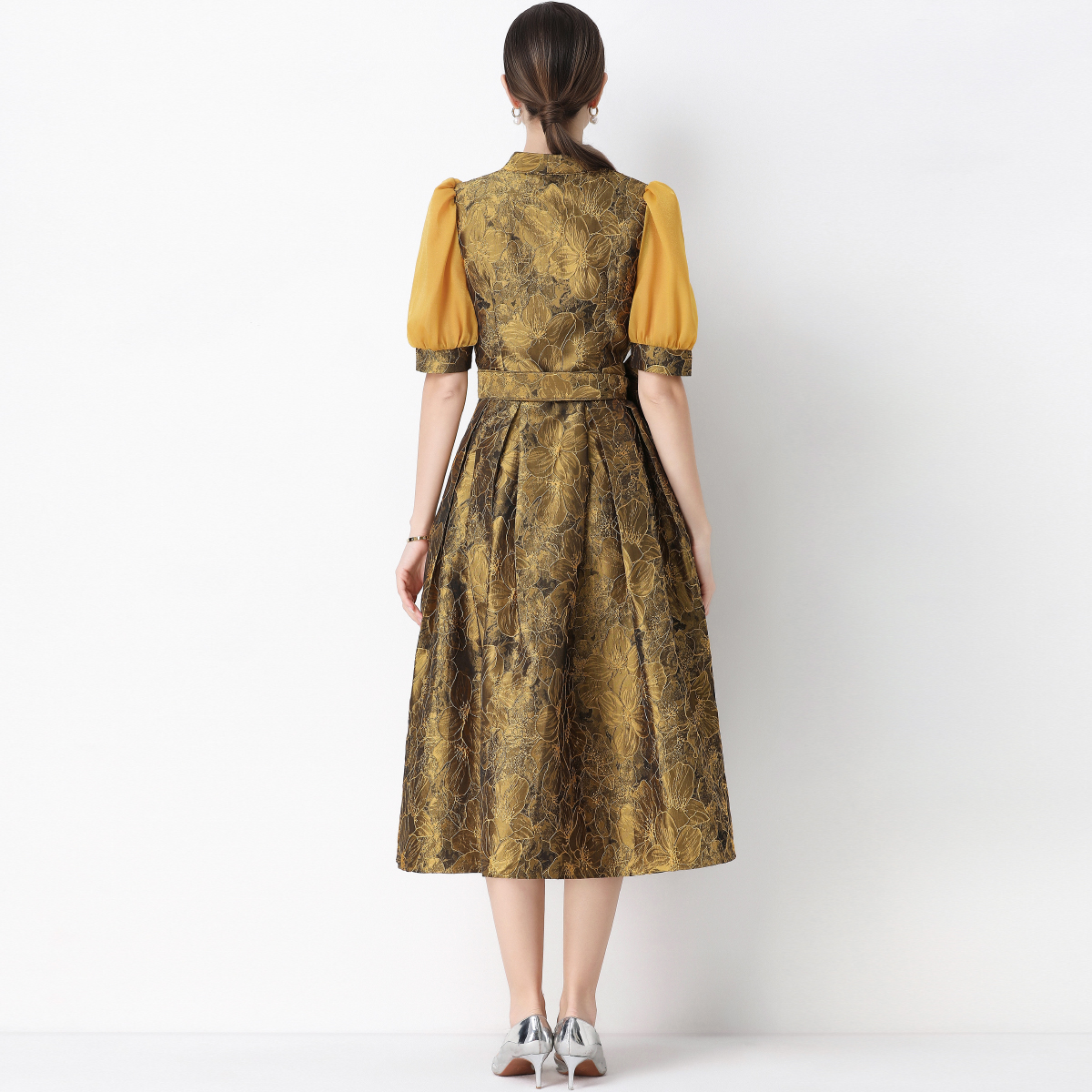 FA54344# 轻奢高级感提花圆领无袖连衣裙女排扣收腰显瘦中长裙 服裝批發女裝批發服飾貨源