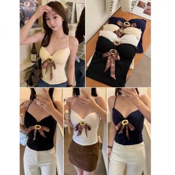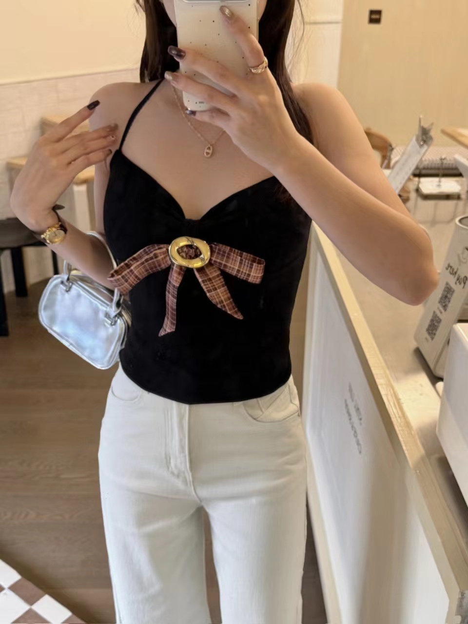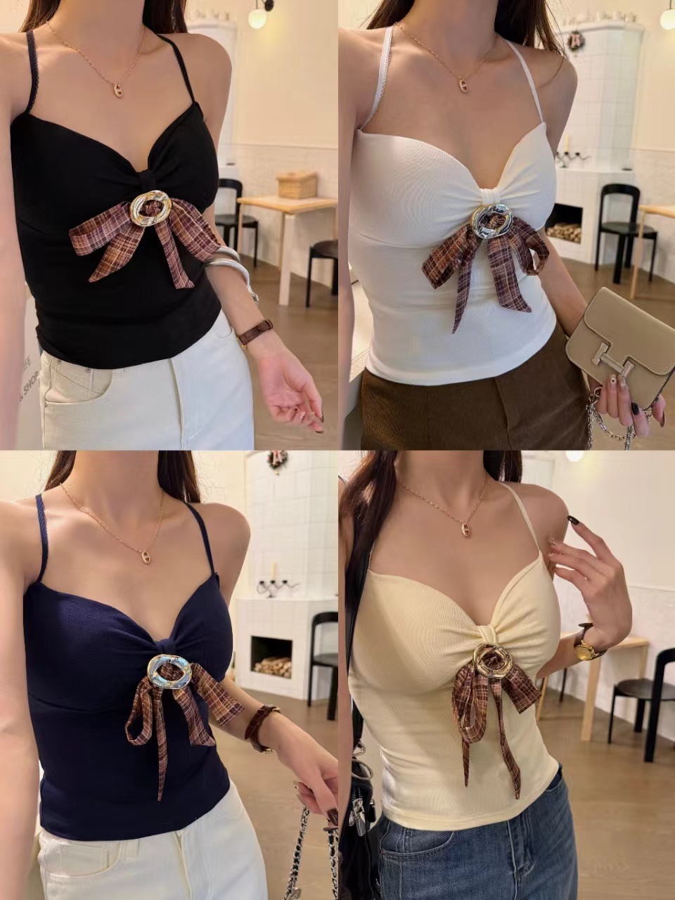 FA54359# 秋季新款甜美磨毛蝴蝶结装饰保暖背心修身显瘦女固定带胸垫 服裝批發女裝批發服飾貨源