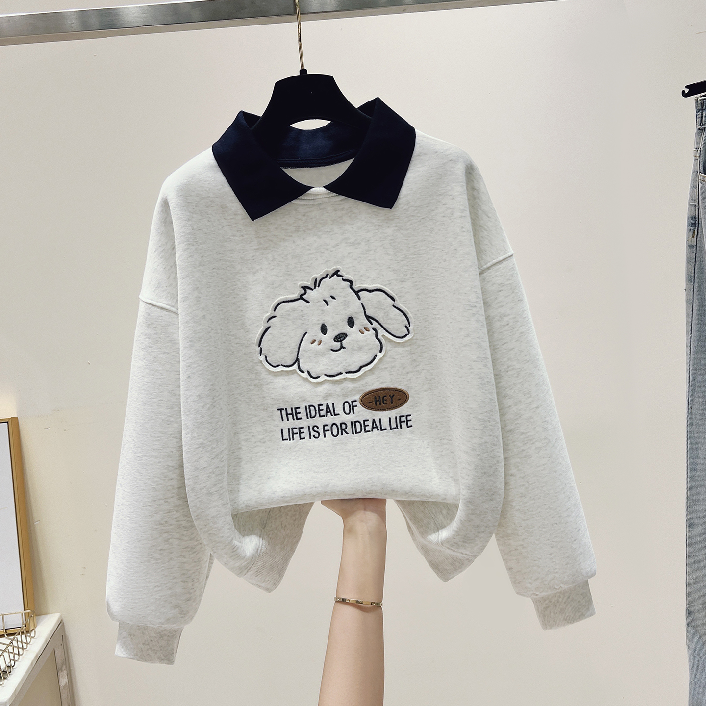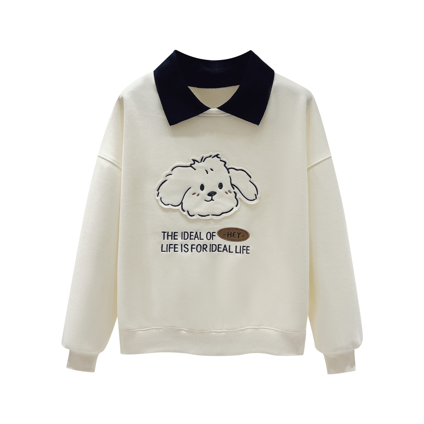 Home > 卫衣 > FA54486# 新款娃娃领假两件立体小狗贴布绣小个子卡通卫衣 服裝批發女裝批發服飾貨源