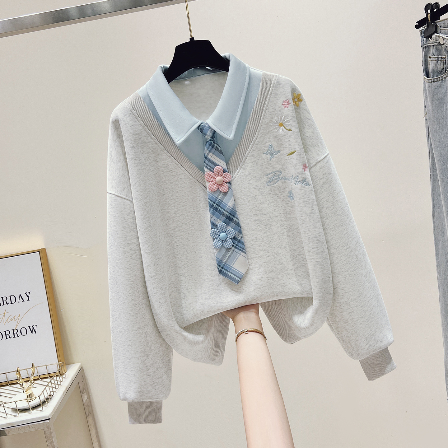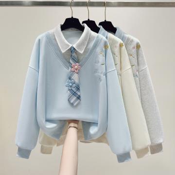 Home > 卫衣 > FA54489# 早春新款小清新绣花学院风假两件宽松polo领卫衣 服裝批發女裝批發服飾貨源