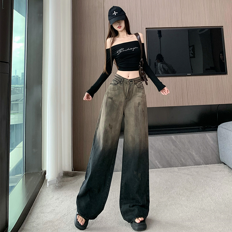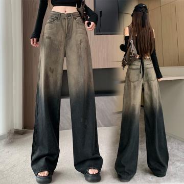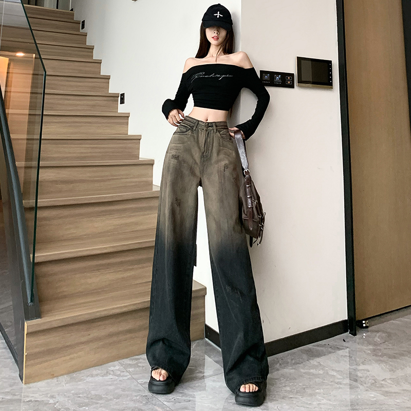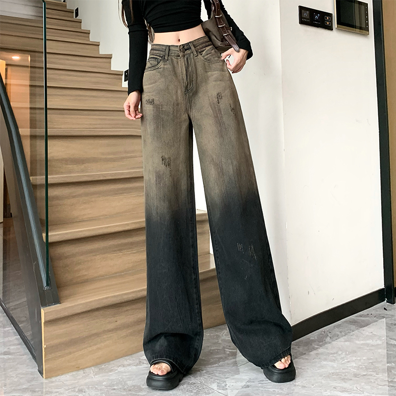 FA54490# 渐变复古阔腿牛仔裤女宽松拖地直筒裤美式高街长裤 服裝批發女裝批發服飾貨源