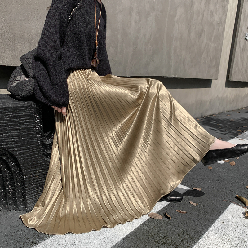 FA54505# 百搭高腰百褶a字半身裙女新款早秋中长款显瘦冬季气质长裙 服裝批發女裝批發服飾貨源