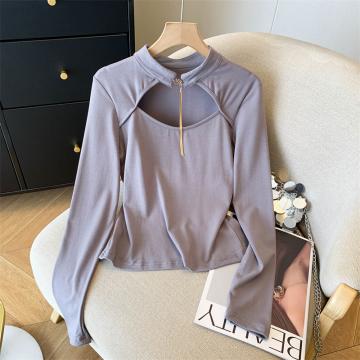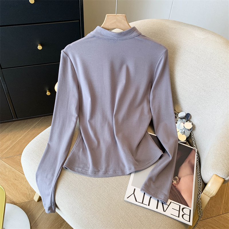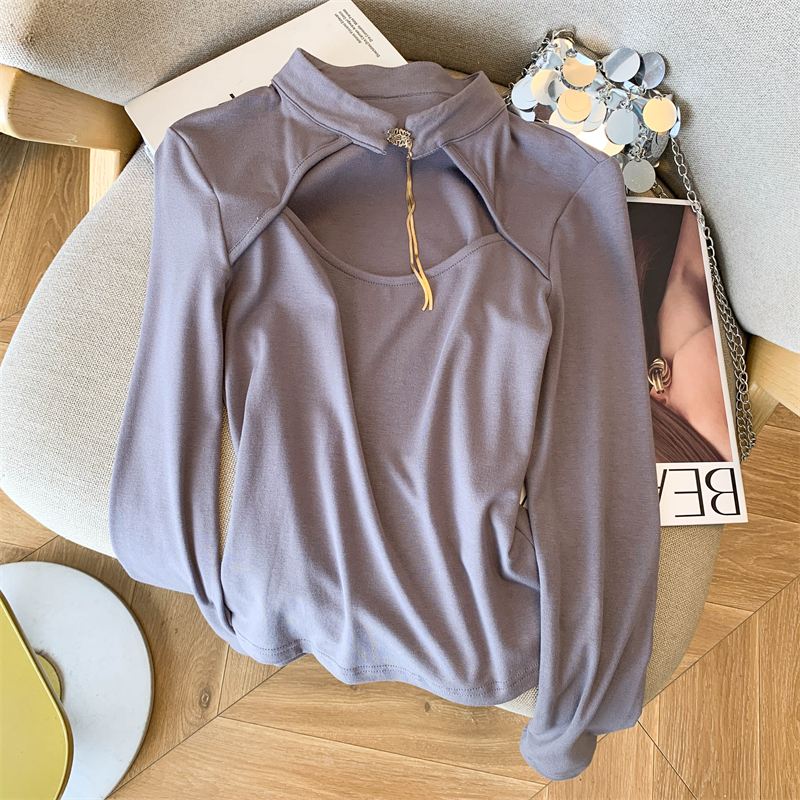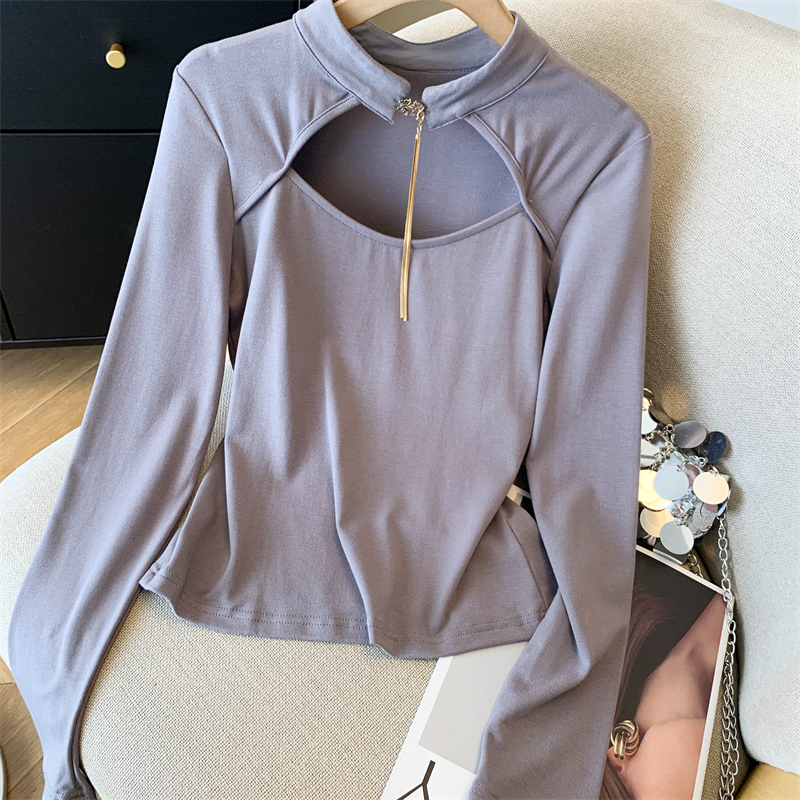 FA54520# 复古纯欲风性感链条上衣春季设计感显瘦半高领t恤 服裝批發女裝批發服飾貨源