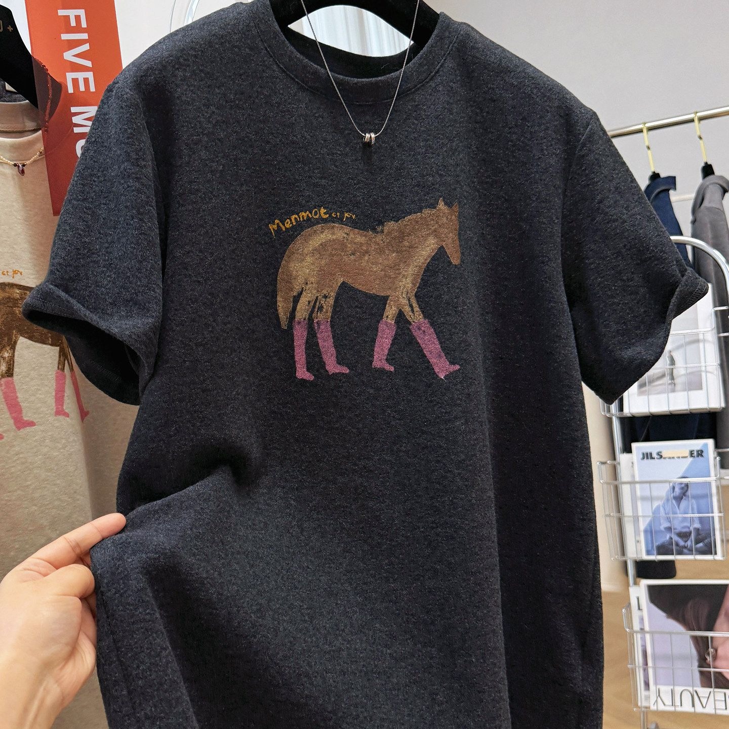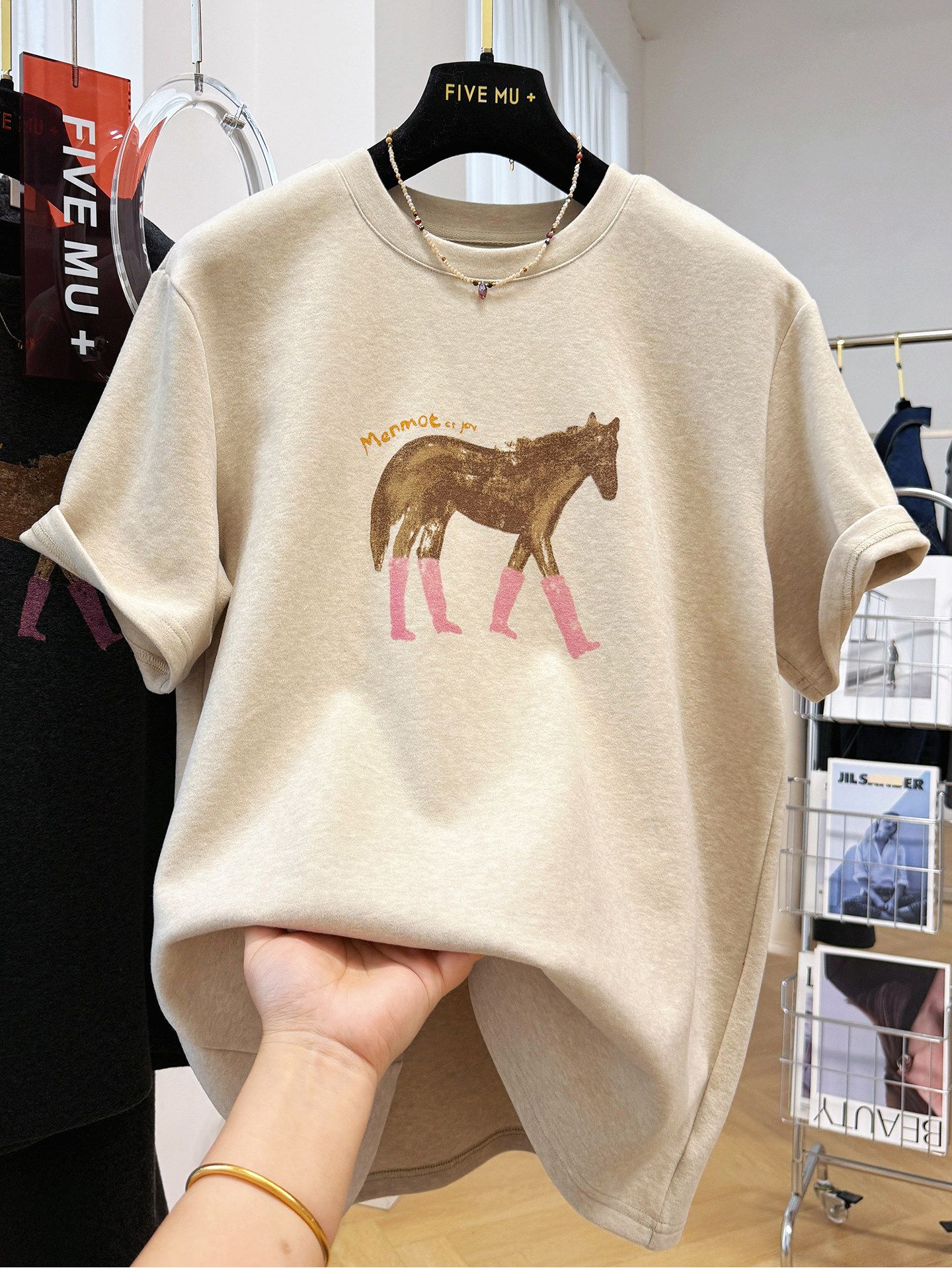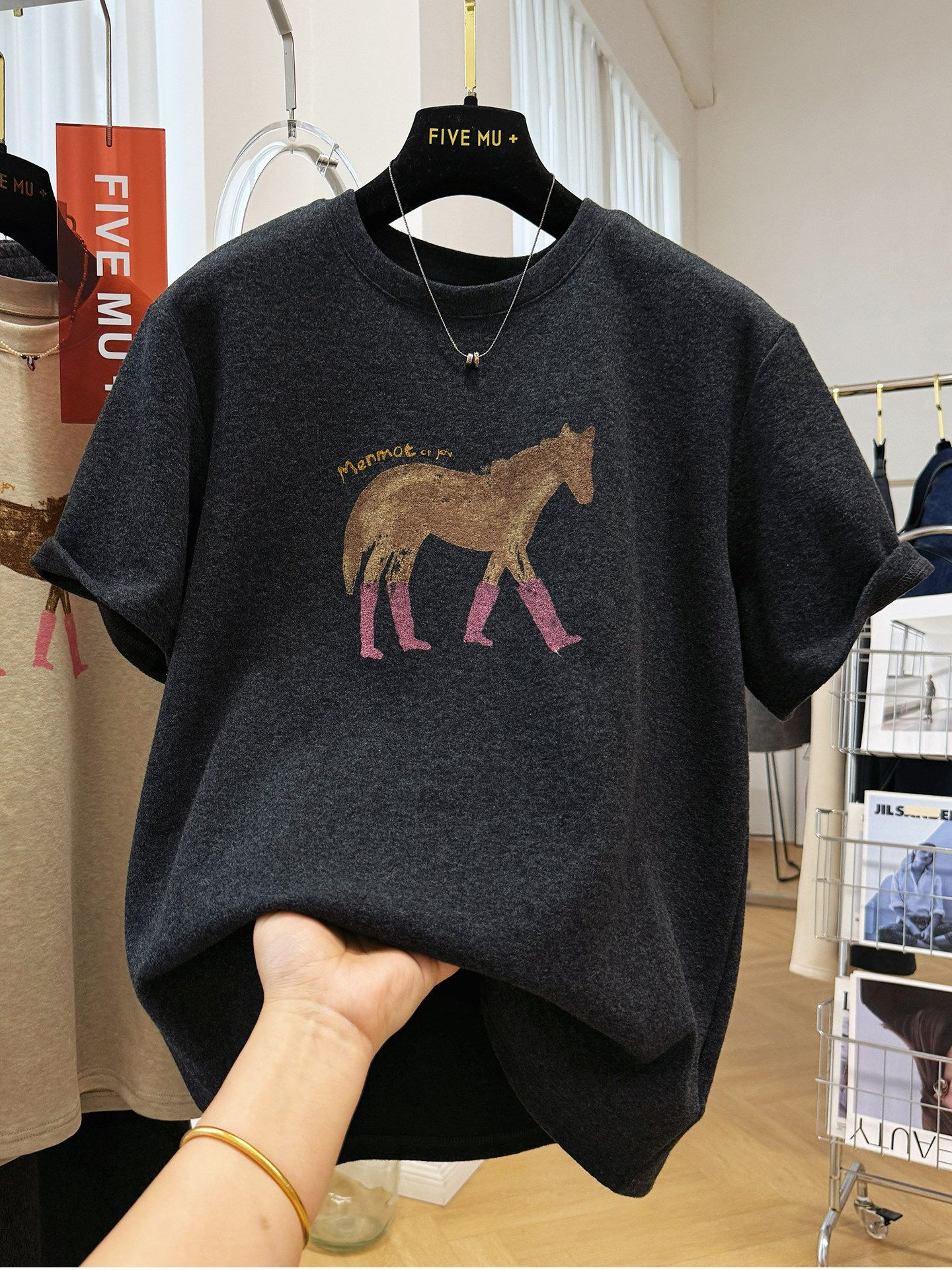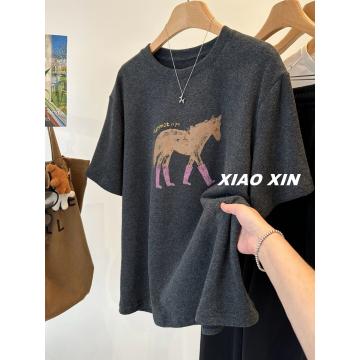 FA54523# 原版螺纹德绒大码300斤韩系磨毛短袖T恤女早春印花宽松半袖上衣潮 服裝批發女裝批發服飾貨源