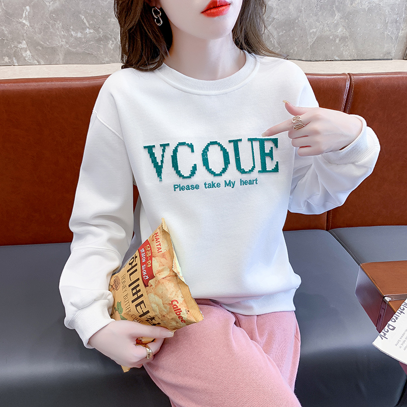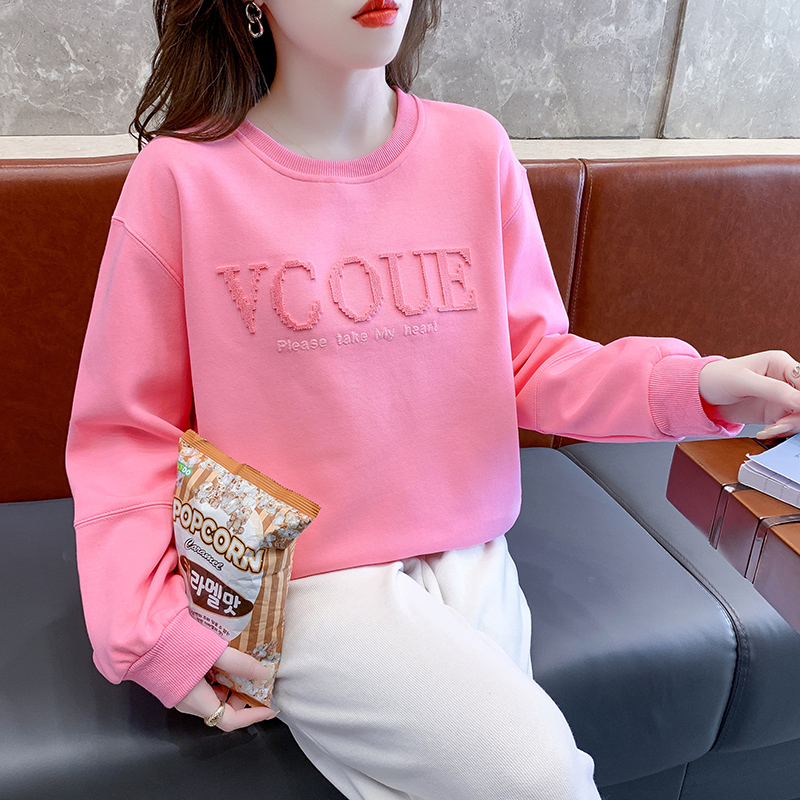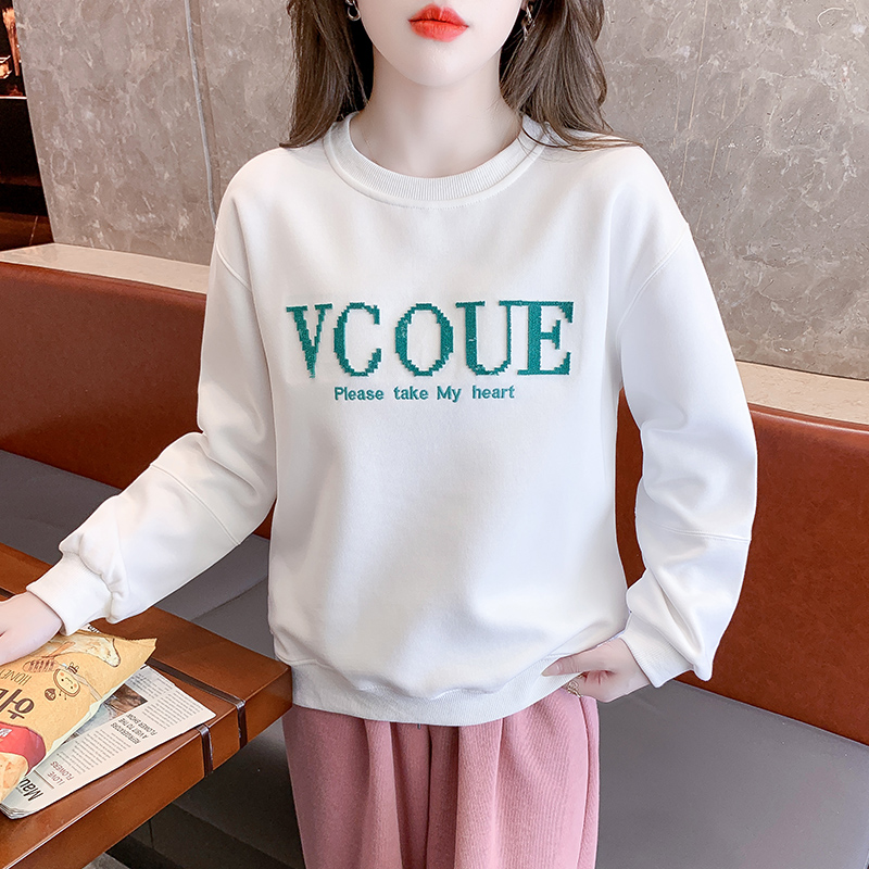 FA54527# 秋季牙刷绣圆领卫衣女设计感宽松韩版字母绣花上衣 服裝批發女裝批發服飾貨源