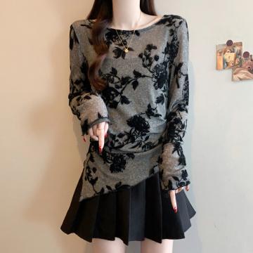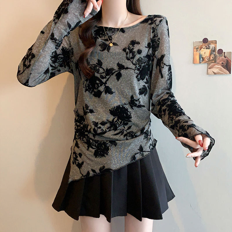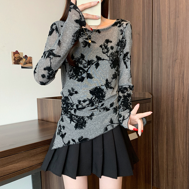 FA54875# 春季新款大码新中式水墨印花不规则开叉收腰显瘦T恤上衣 服裝批發女裝批發服飾貨源