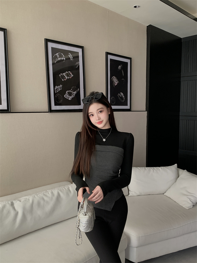 FA55357# 新款轻奢风不规则拼接收腰假两件T恤女 服裝批發女裝批發服飾貨源