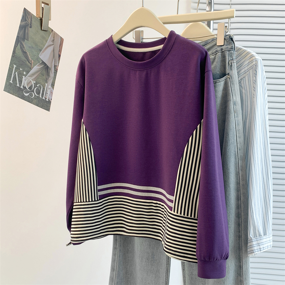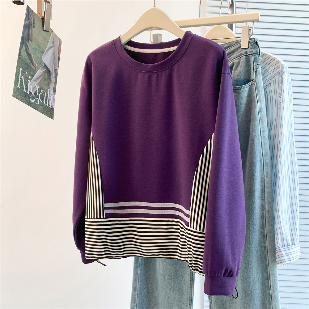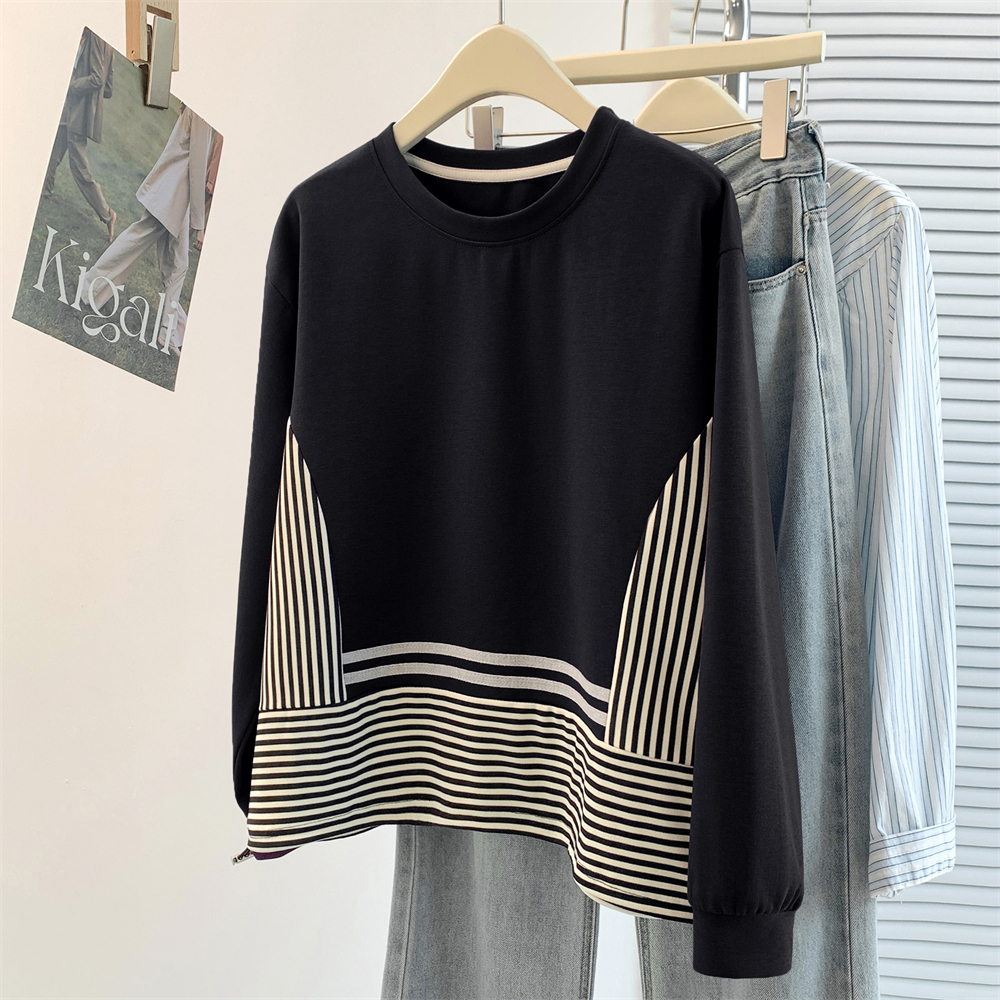 FA55454# 设计感洋气减龄时尚休闲百搭卫衣秋冬韩版条纹拼接高级感T恤 服裝批發女裝批發服飾貨源