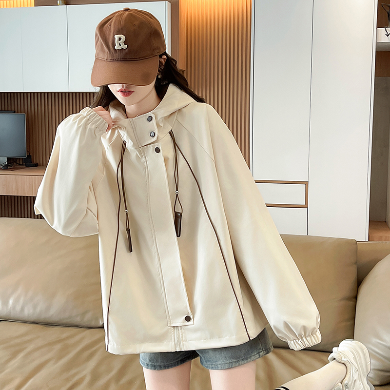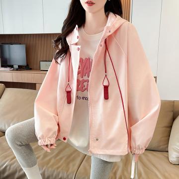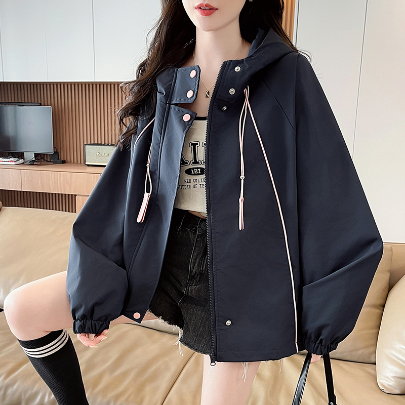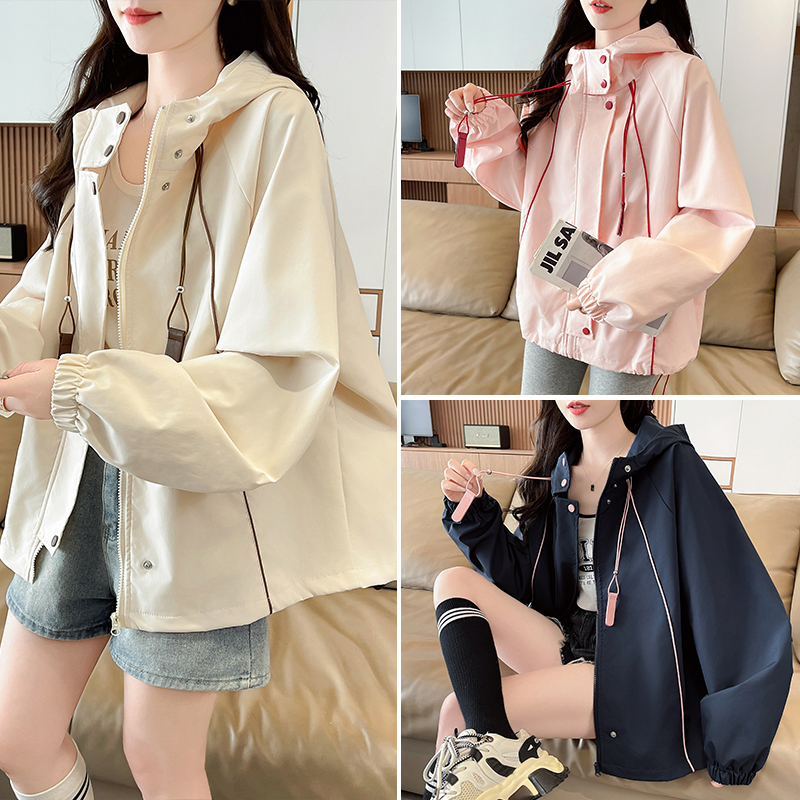 FA55512# 韩版连帽冲锋衣外套女春秋新款今年流行爆款宽松休闲夹克上衣 服裝批發女裝批發服飾貨源