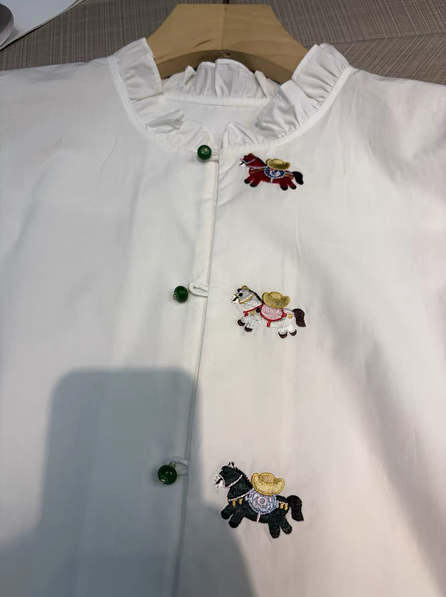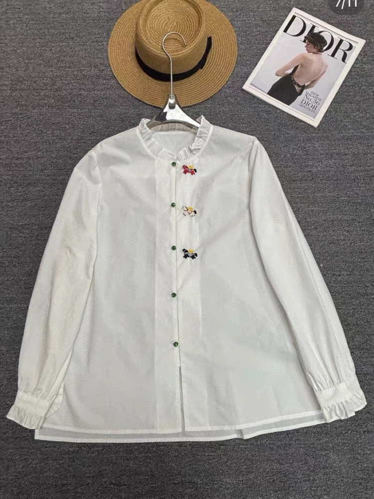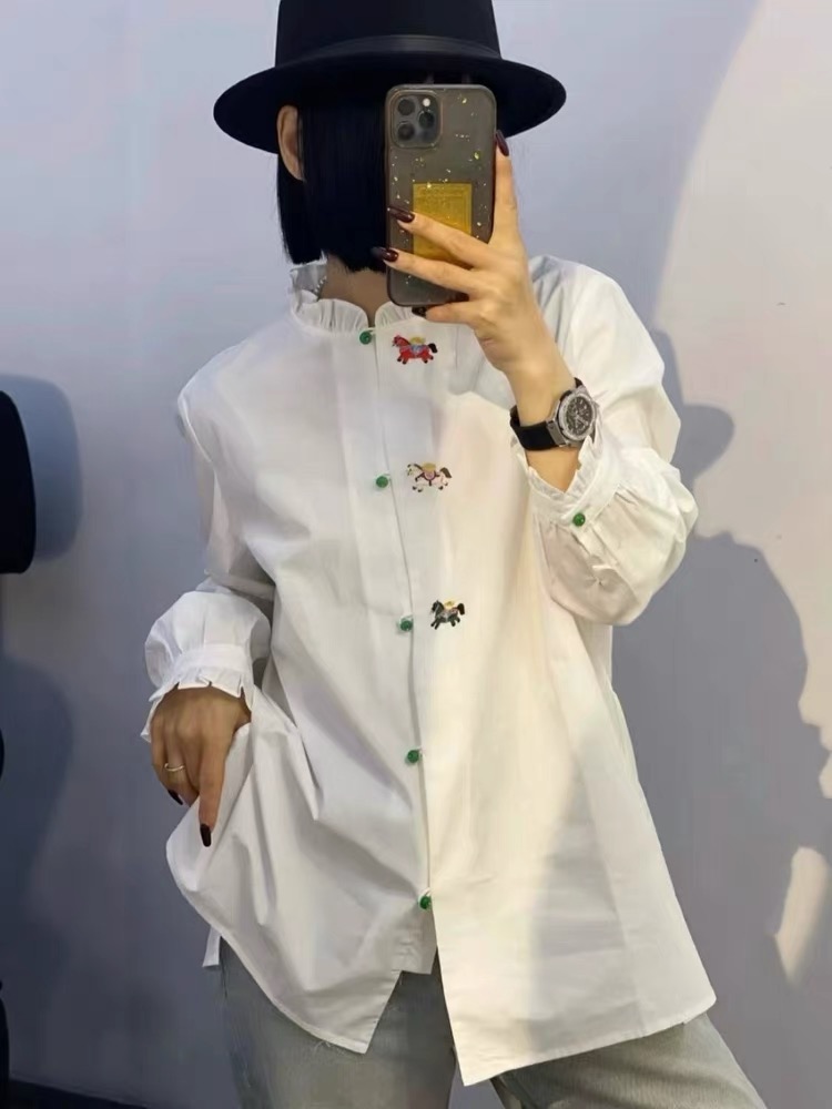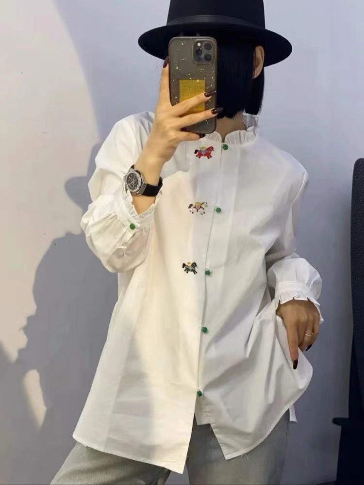 FA55544# 木耳边领刺绣长袖衬衫女新款别致上衣衬衣 服裝批發女裝批發服飾貨源