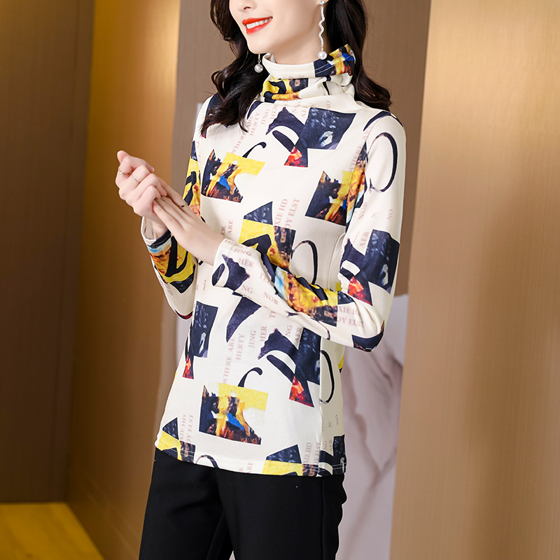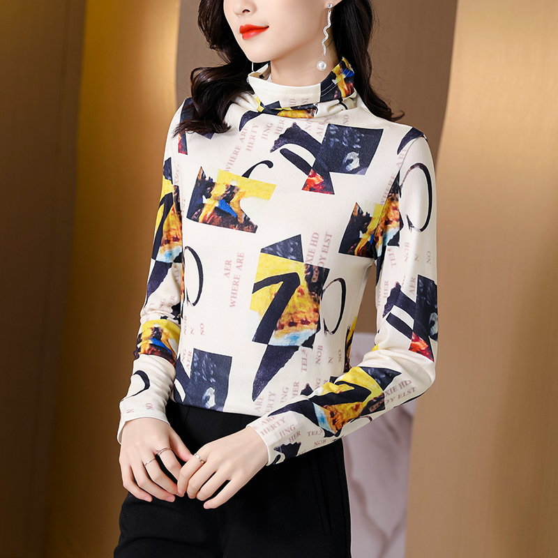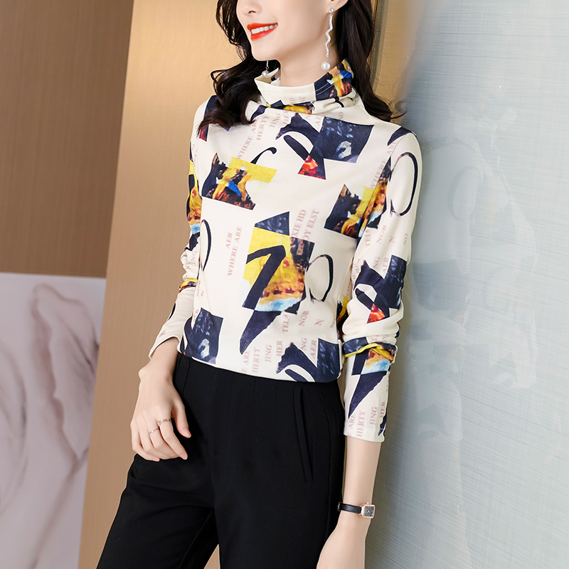 FA55593# 春秋新款弹力上衣超细时尚针织衫印花洋气套头韩版打底衫女 服裝批發女裝批發服飾貨源