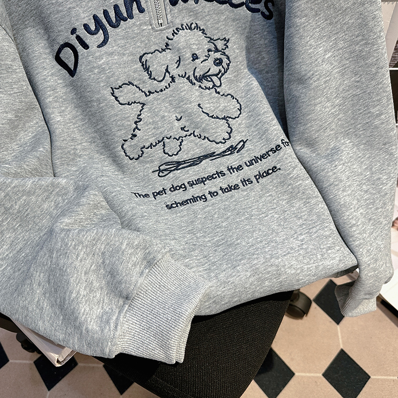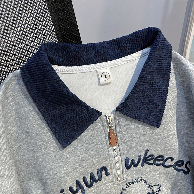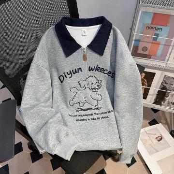 FA55767# 薄款卫衣女装设计感新款拉链春秋刺绣宽松撞色POLO领上衣 服裝批發女裝批發服飾貨源