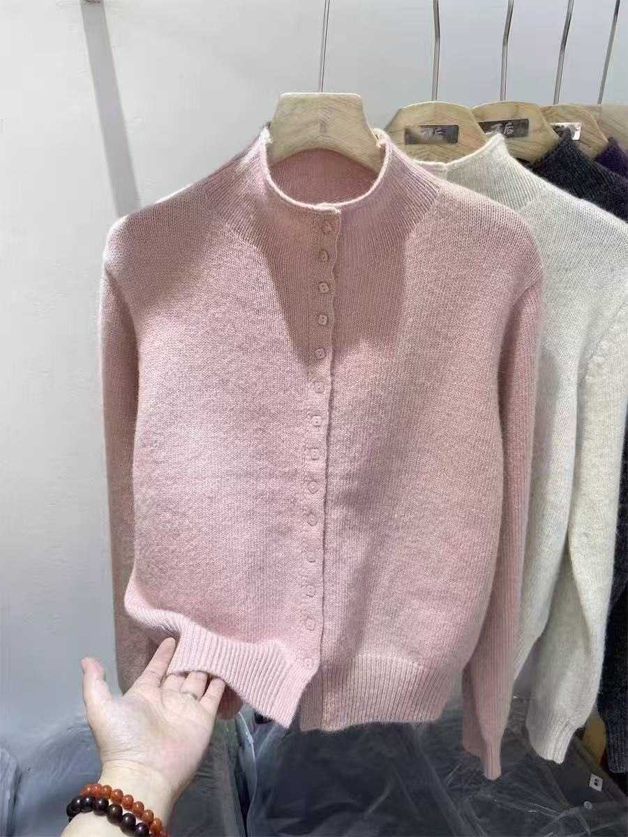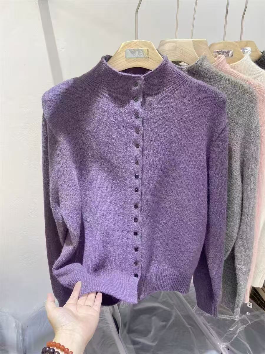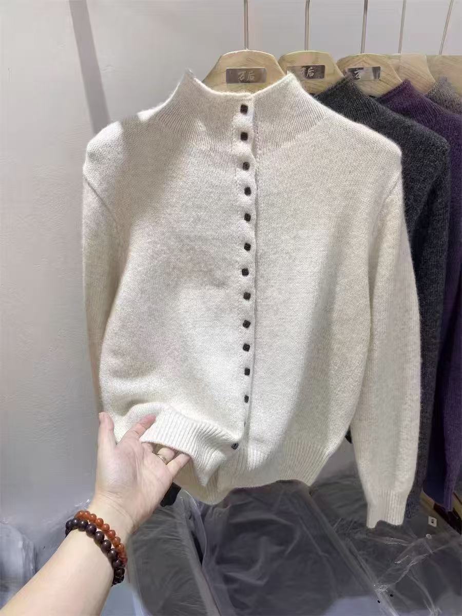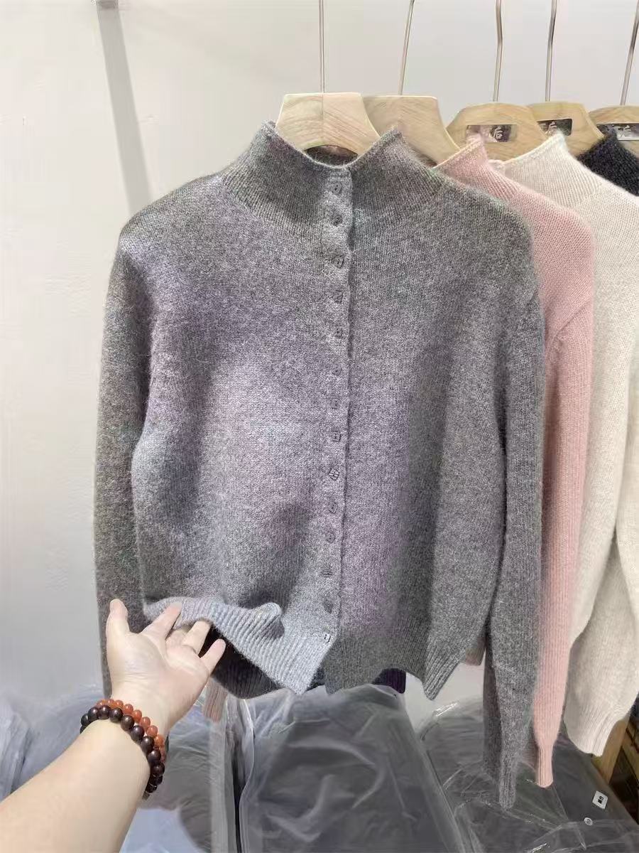 FA55978# 深灰色高领单排扣针织开衫冬季新款保暖上衣女 服裝批發女裝批發服飾貨源