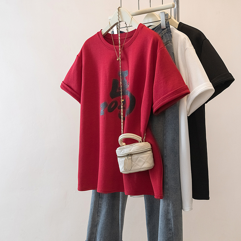 FA56141# 大码马年红色圆领印花本命年正肩短袖T恤女春夏新款 服裝批發女裝批發服飾貨源