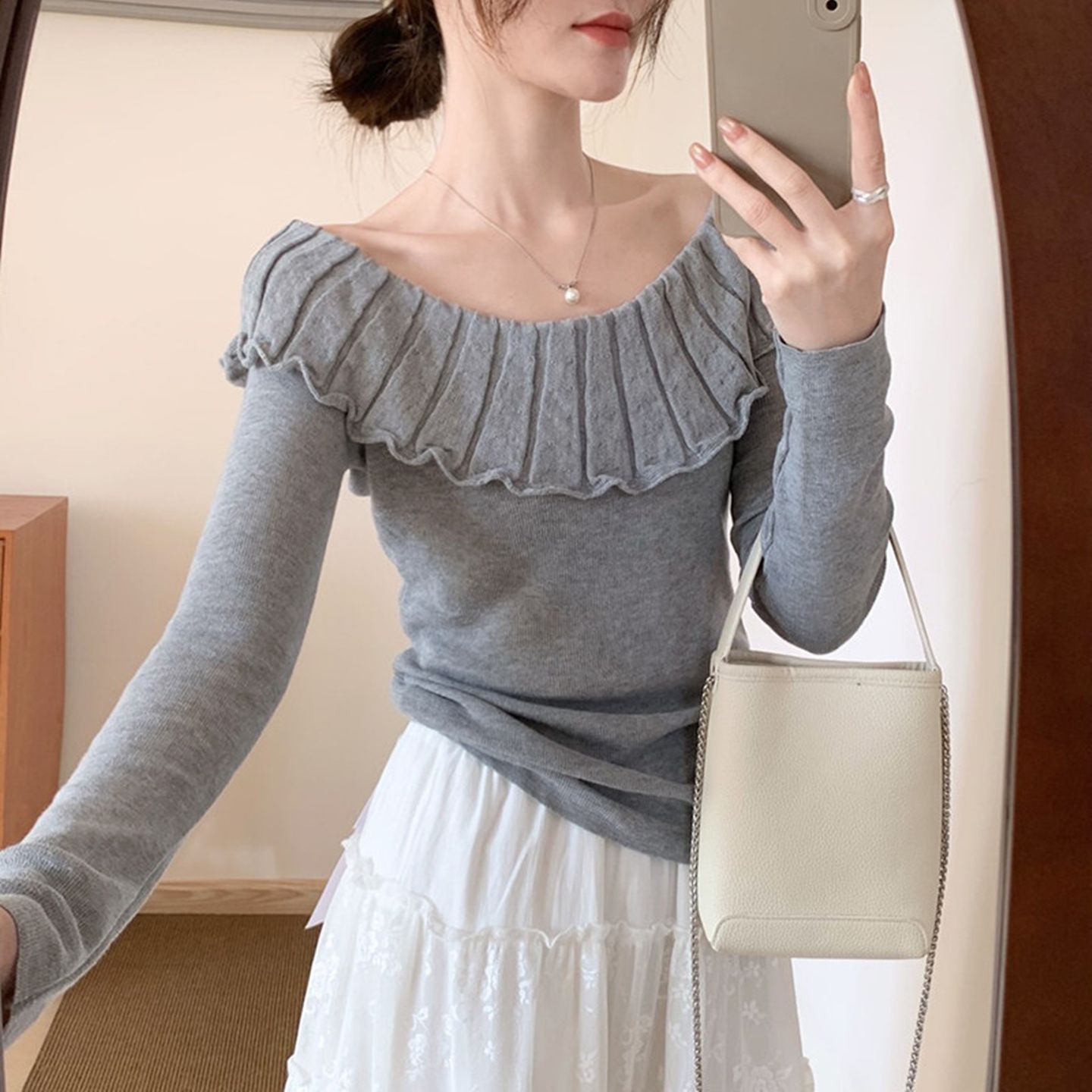 FA56204# 安迪绒洗水天猫抖音品质一字领露肩针织毛衣女 服裝批發女裝批發服飾貨源