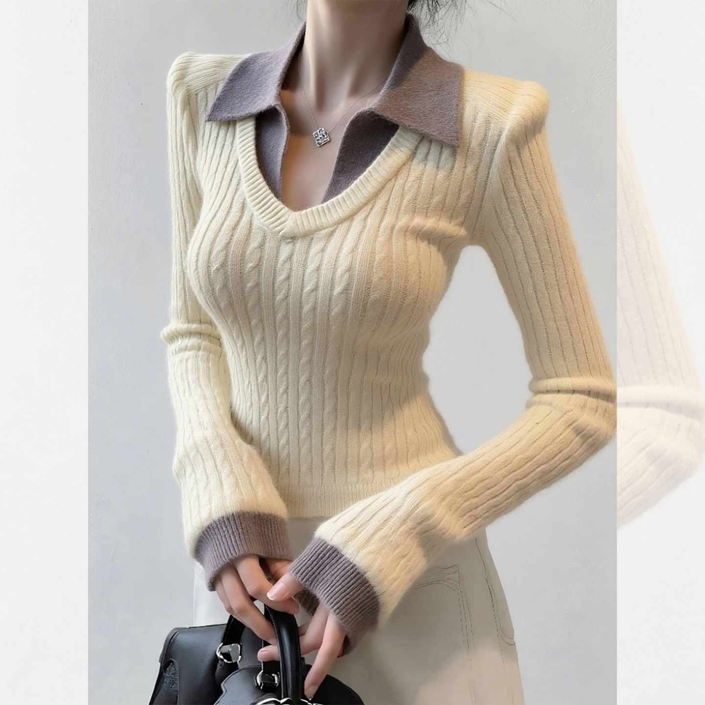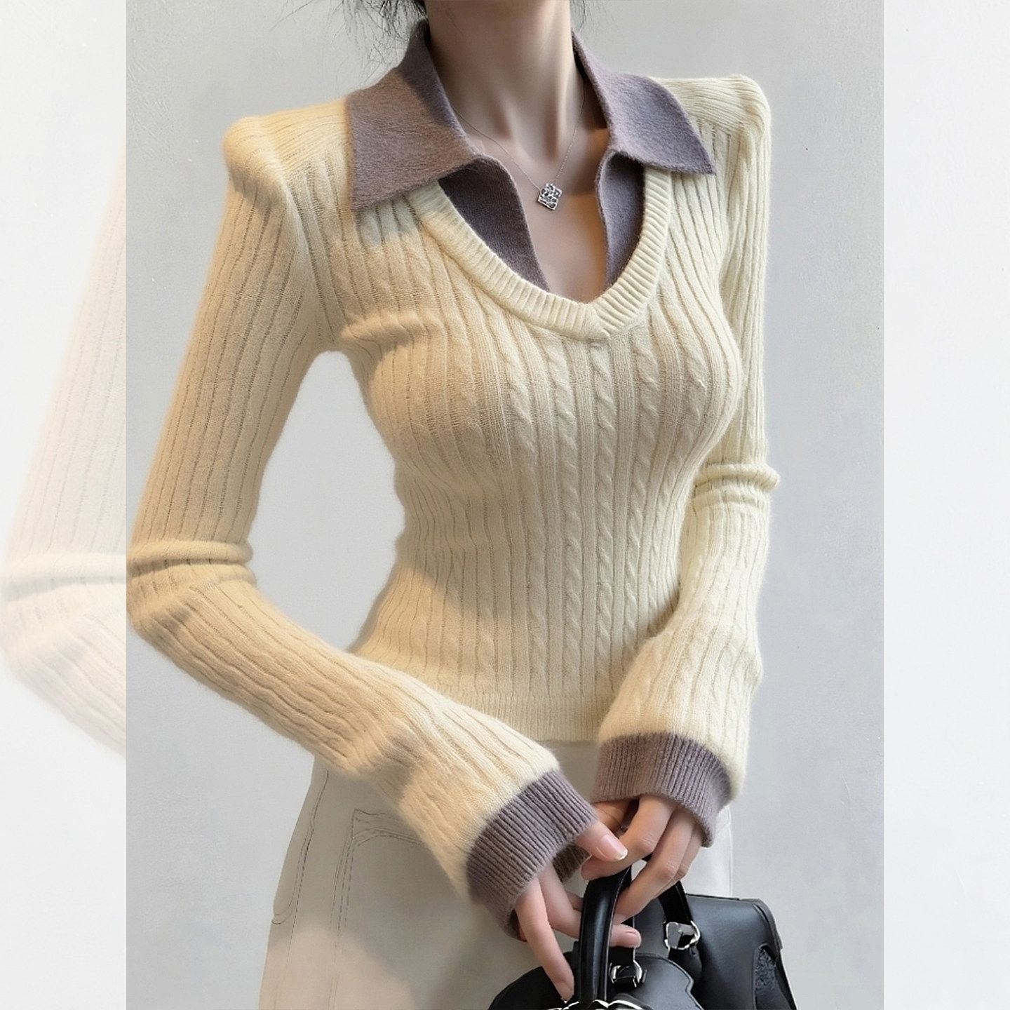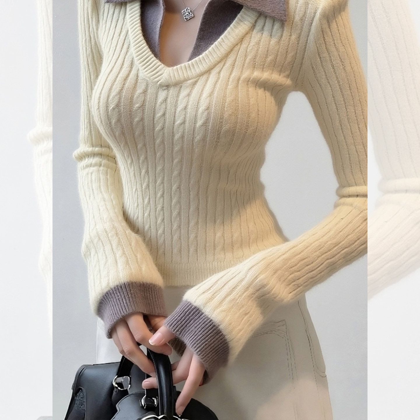 FA56205# 北极绒洗水天猫抖音品质针织假两件毛衣打底女 服裝批發女裝批發服飾貨源