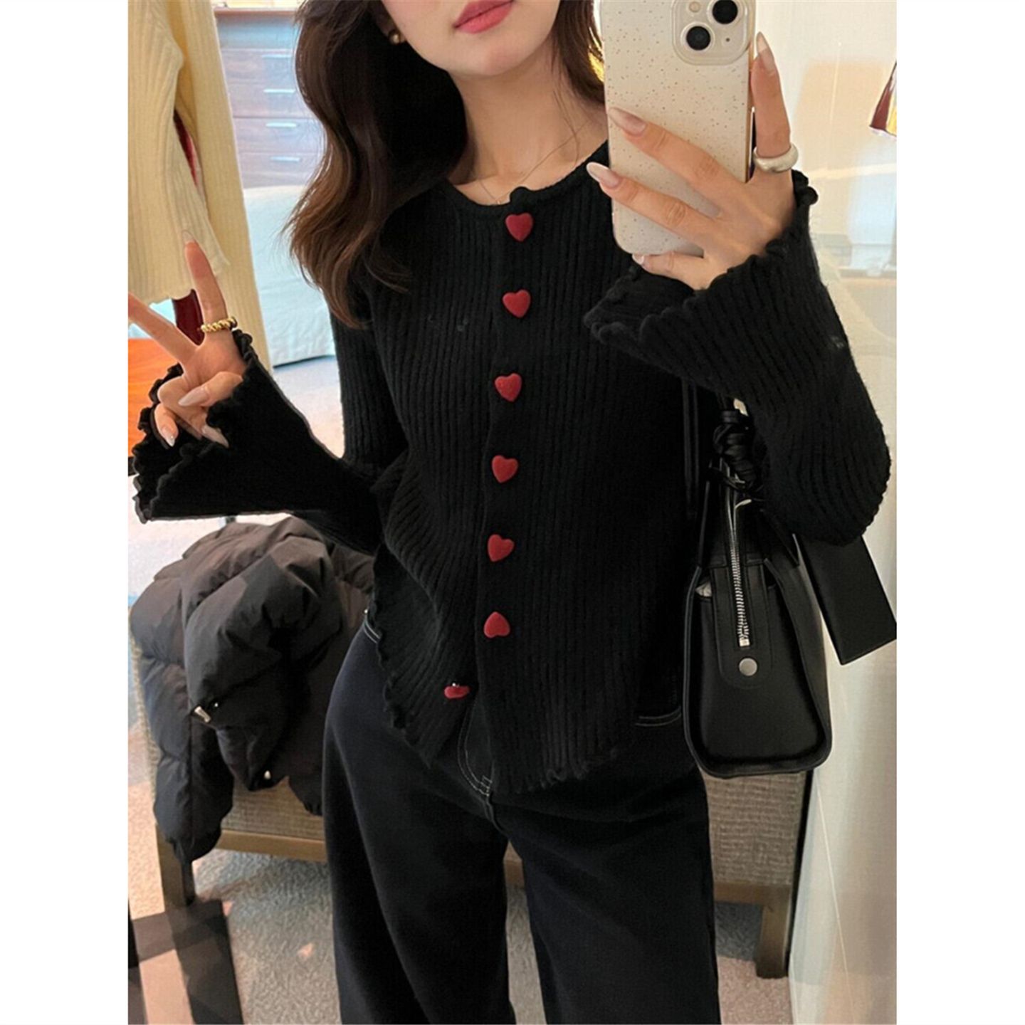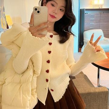 FA56206# 安迪绒洗水天猫抖音品质爱心纽扣针织开衫女潮 服裝批發女裝批發服飾貨源