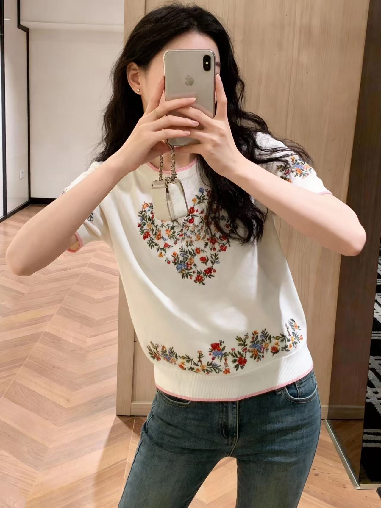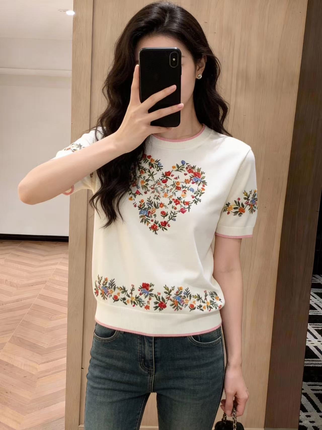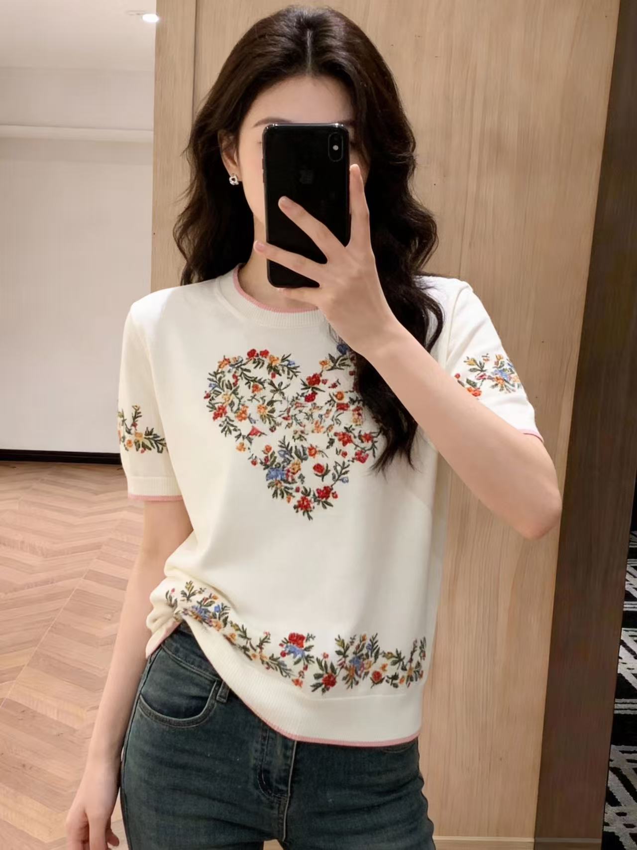 FA56228# 春女装新款绝美巨好看休闲花朵印花宽松型短袖圆领碎花 服裝批發女裝批發服飾貨源