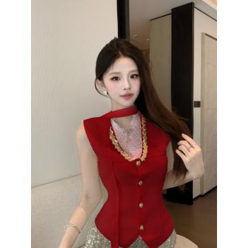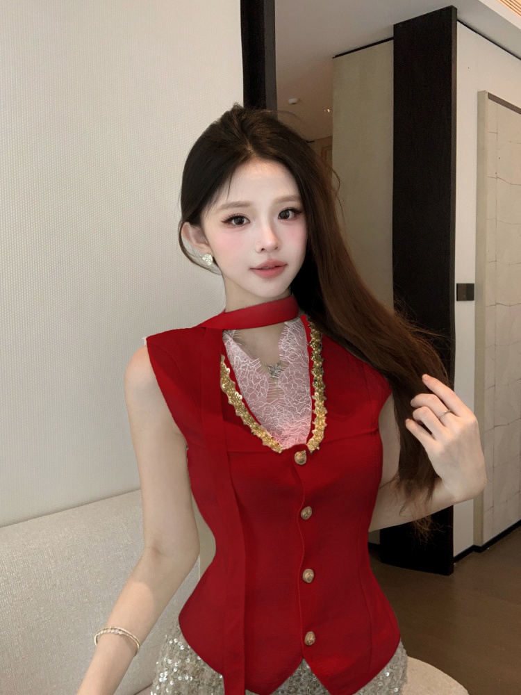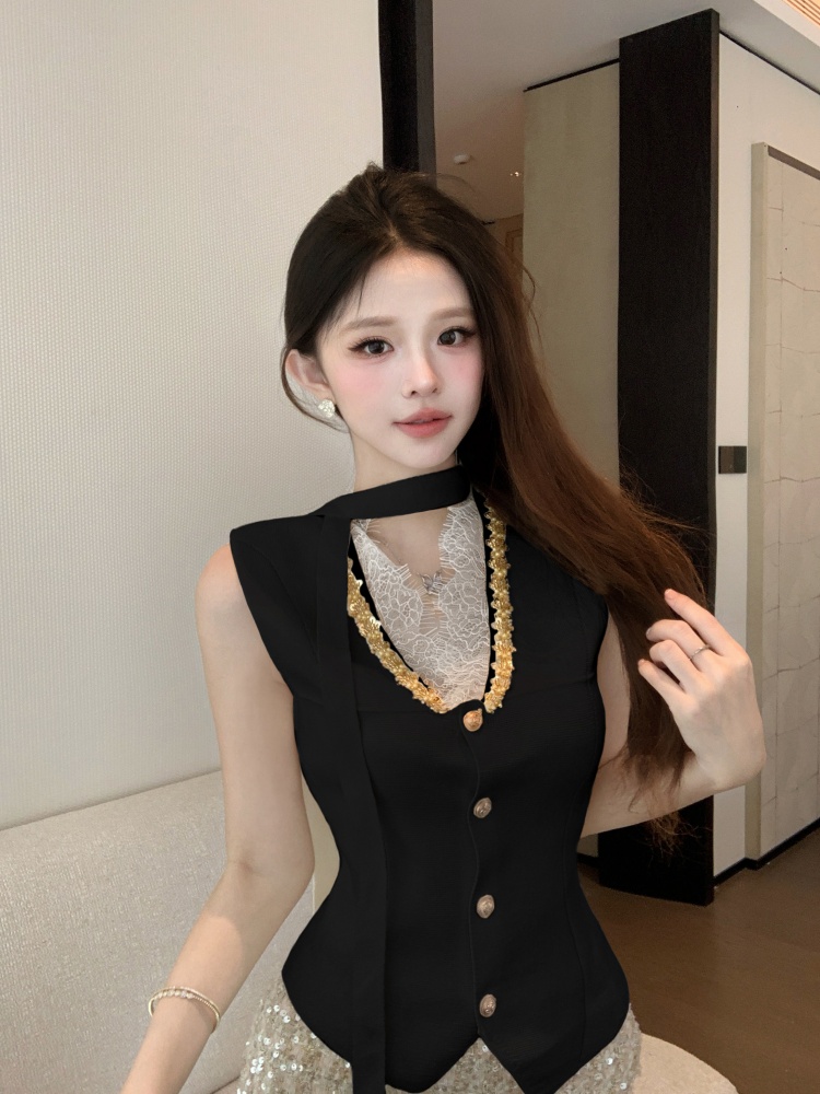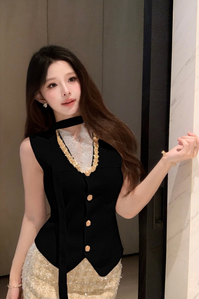 Home > 打底背心、防晒衣、围巾、披肩 > FA56248# 春秋季针织衫新款纯欲甜美蕾丝拼接V领收腰背心围脖洋气百搭 服裝批發女裝批發服飾貨源