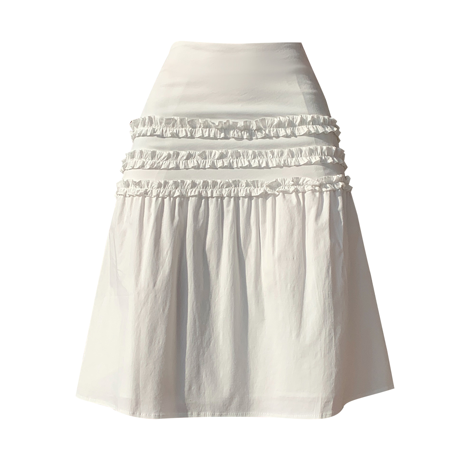FA56254# 春夏新款设计花边褶皱半身裙小众木耳边显瘦白色百搭中裙 服裝批發女裝批發服飾貨源