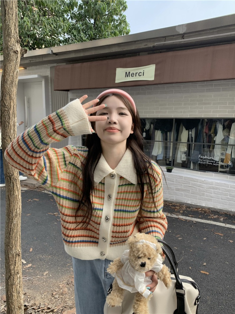 FA56263# 秋季韩版温柔风小香风圆领气质毛衣开衫外套女 服裝批發女裝批發服飾貨源