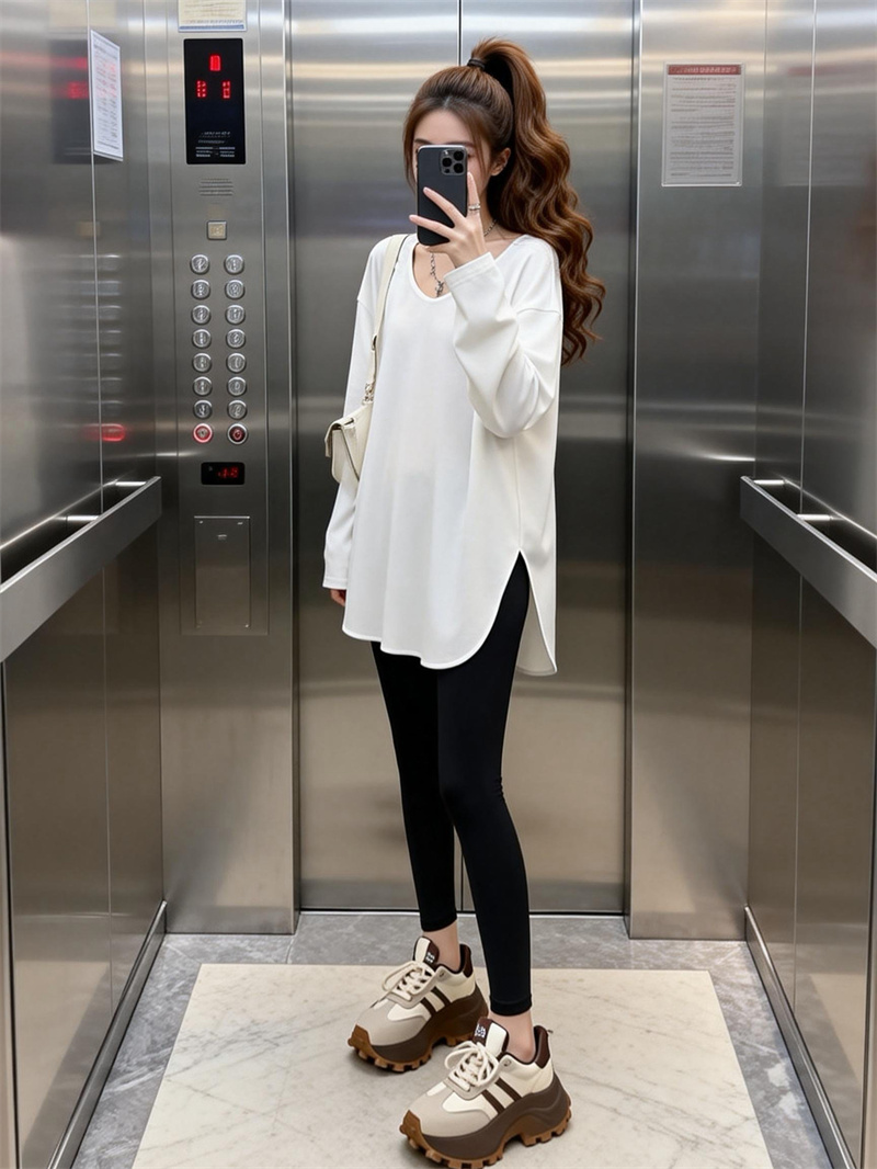 BY10816# 春上新·休闲气质设计感中长款小衫女士宽松T恤女上衣 服裝批發女裝批發服飾貨源