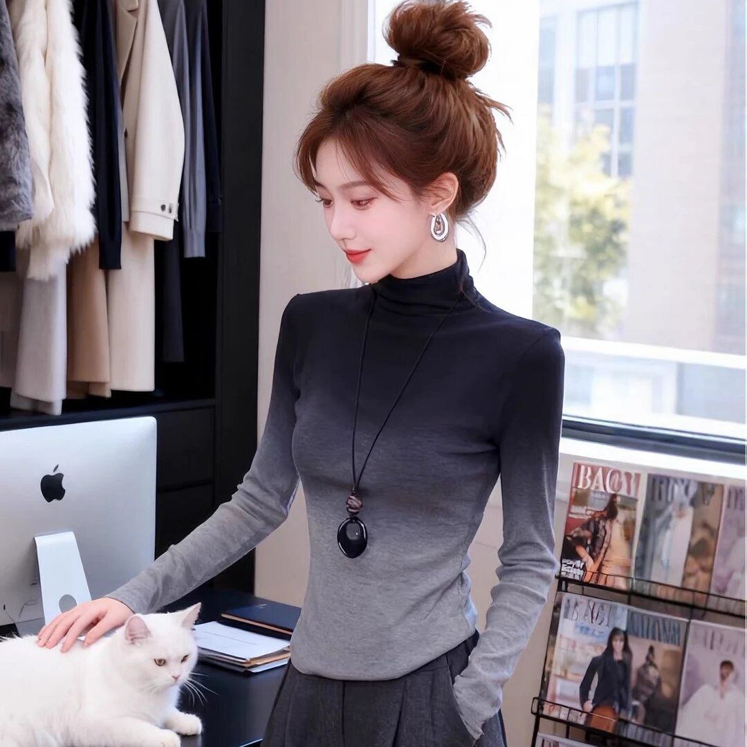 BY10823# 高级感渐变灰高领上衣秋冬女装轻熟小众不撞款打底内搭德绒女打底 服裝批發女裝批發服飾貨源