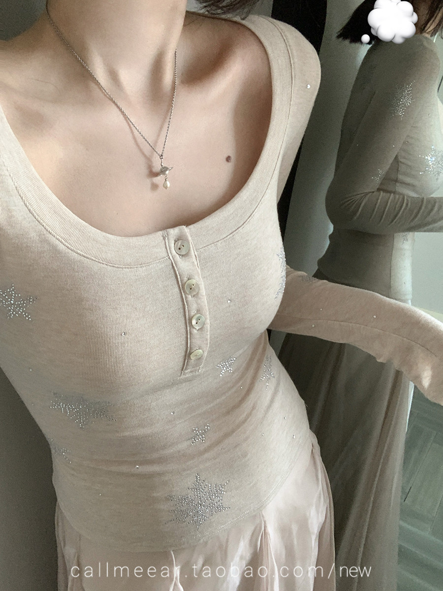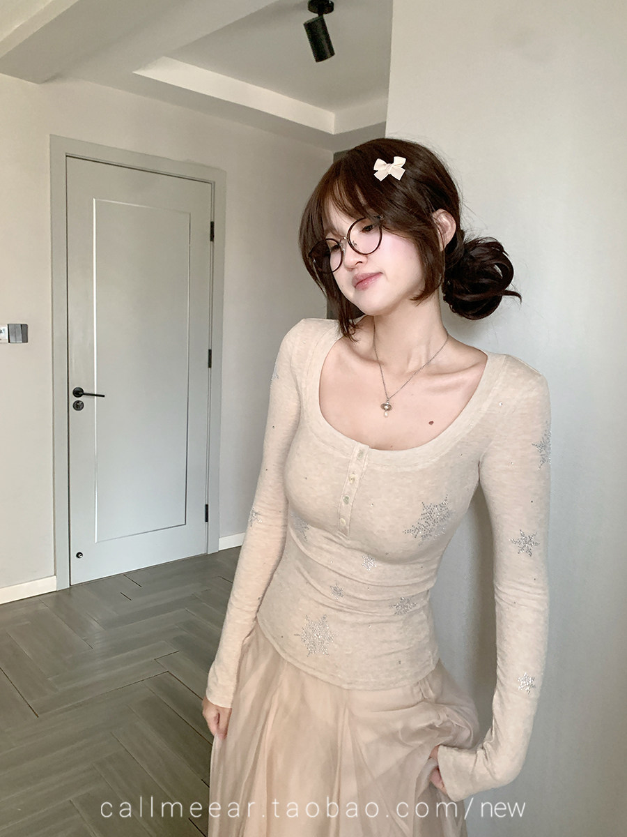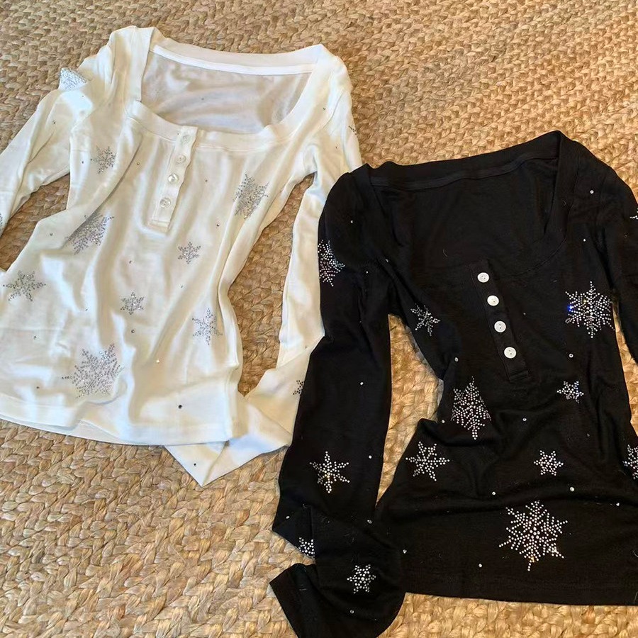 BY10828# 烫钻雪花T恤天丝羊毛亨利衫早春修身内搭长袖上衣 服裝批發女裝批發服飾貨源