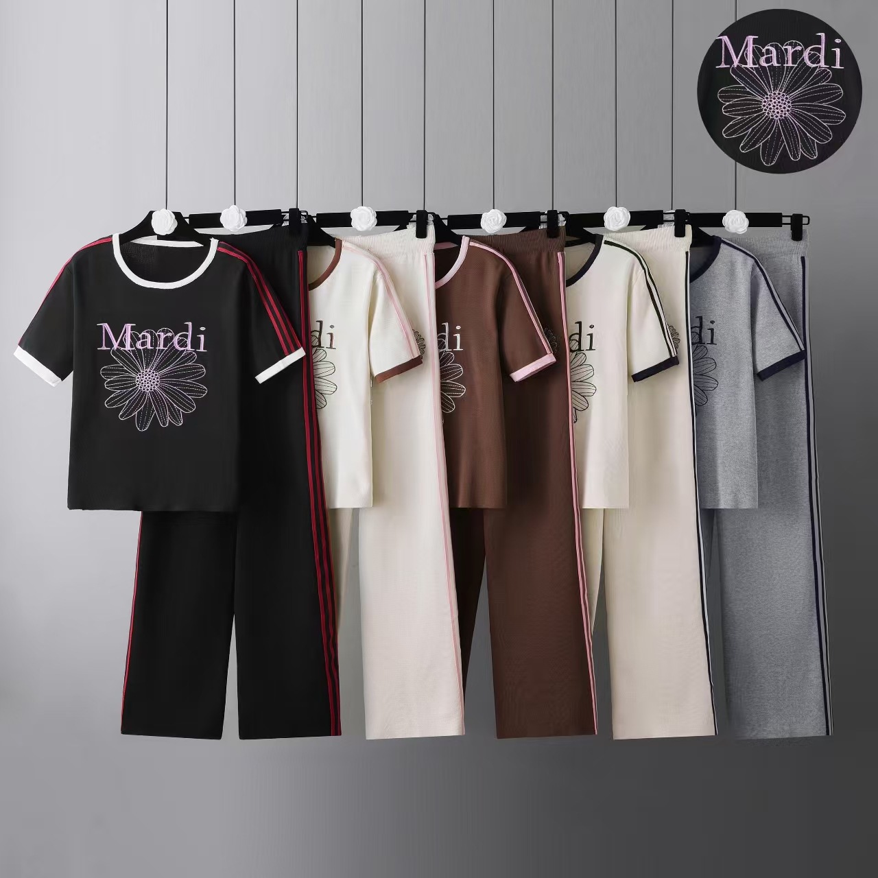 BY11797# 跨境雏菊短袖针织T恤印花上衣阔腿裤两件套宽松金高银同款韩版 服裝批發女裝批發服飾貨源