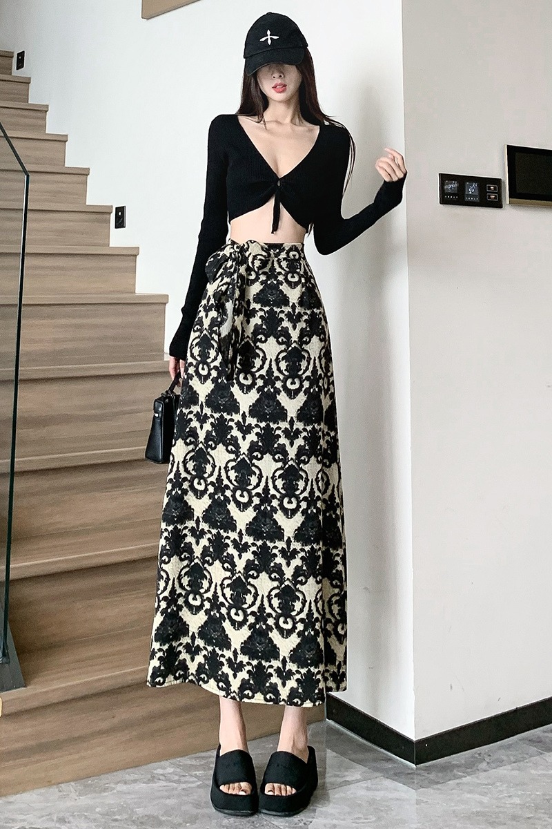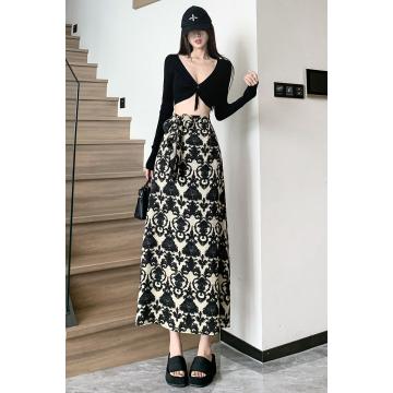 Home > 短裤、半身裙 > BY11824# 复古提花半身裙女夏季薄款设计感蝴蝶结高腰a字裙垂感包臀直筒裙 服裝批發女裝批發服飾貨源