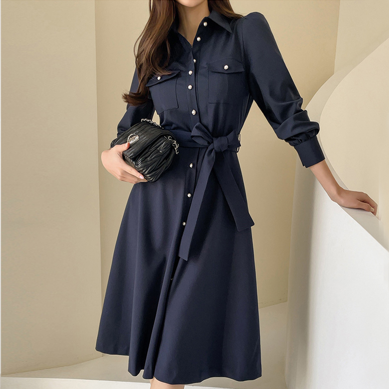 BY11847# 春秋季新款小个子连衣裙女设计感小众收腰系带显瘦气质长裙子 服裝批發女裝批發服飾貨源