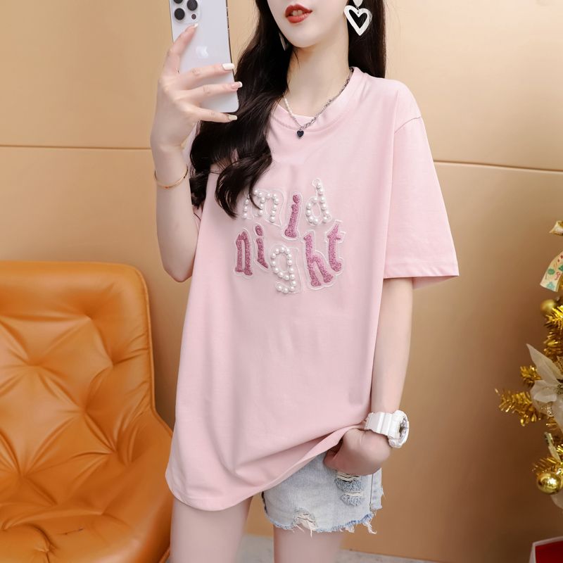 Home > 短袖T恤 > BY11859# 夏季潮牌棉大码重工刺绣钉珠短袖T恤女 服裝批發女裝批發服飾貨源
